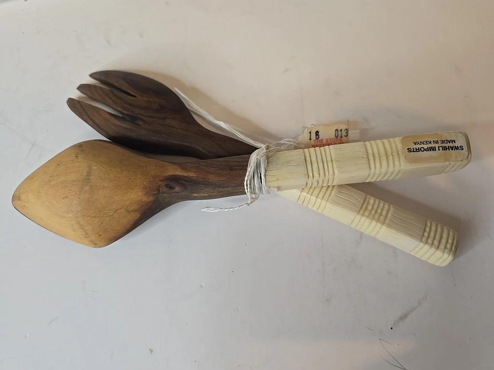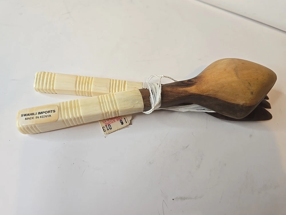 Swahili Kenyan Import Hand Carved Olive Wood Brand New Vintage with original Tag Ships Fast and Free