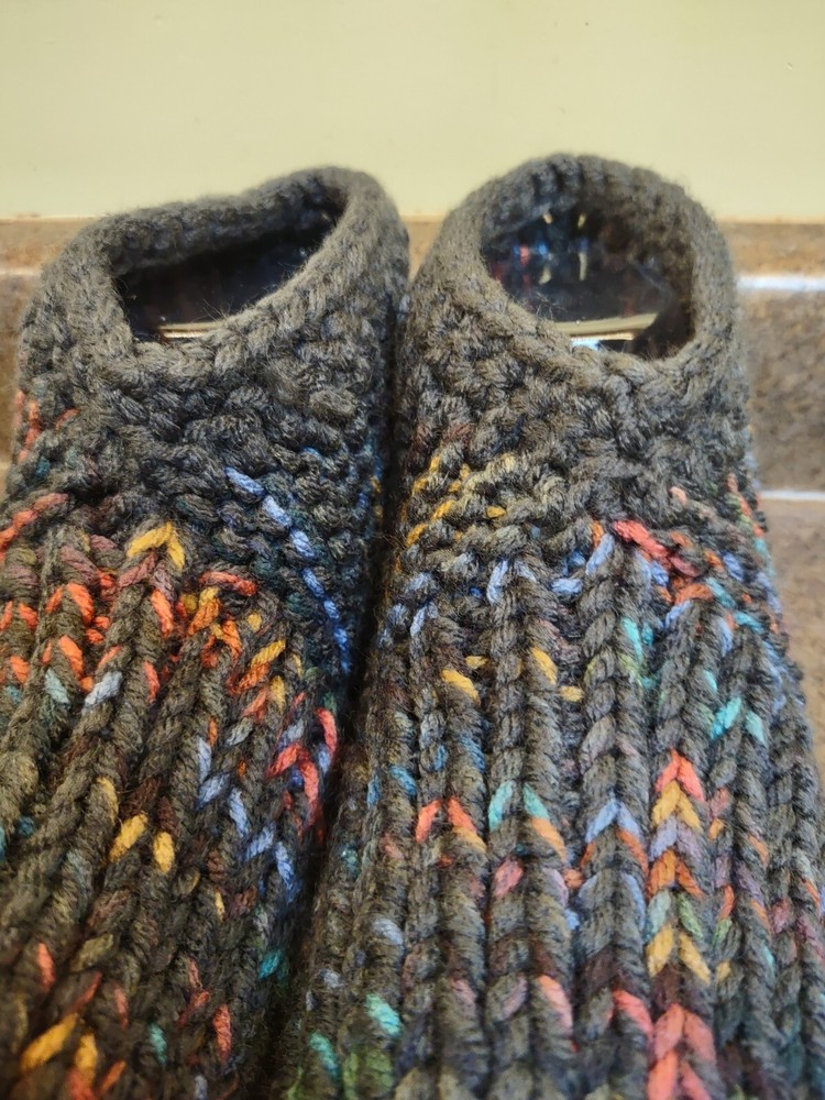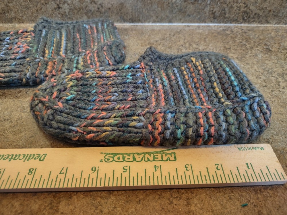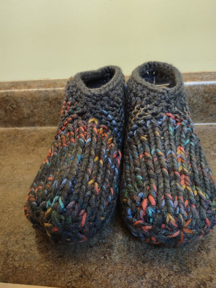 Treat your feet to ultimate comfort with these hand knitted slippers. The colorful design features a slip-on closure and is made from soft and stretchy acrylic yarn. Perfect for casual occasions, these unisex slippers are lightweight and cozy, making them ideal for winter, fall, and spring. The slipper's features include a standard shoe width and a multicolor pattern that adds a touch of fun to your outfit. These slippers are handmade in the United States and are suitable for most people with a US shoe size. Get ready to enjoy the ultimate comfort and warmth with these slip-on slippers.