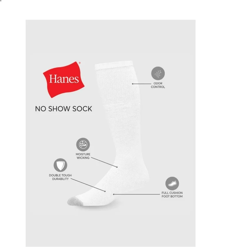 Hanes Men's Double Tough Durability Over-the-Calf Tube Socks are designed for comfort and durability. Here are some key features: Durability: Double Tough Technology: Reinforced stitching in high-wear areas for longer lasting socks. Maximum Cushioning: Provides extra comfort and protection. Comfort: Wicking Cool Comfort Fabric: Helps keep your feet cool and dry. FreshIQ Advanced Odor Protection: Helps fight foot odor. Spandex and Comfort Toe Seam: Ensures a comfortable and secure fit. Overall: Value: A 12-pack offers great value for long-lasting comfort. Versatility: Suitable for various activities, from everyday wear to sports. If you're looking for durable, comfortable, and odor-resistant over-the-calf socks, Hanes Men's Double Tough Durability Over-the-Calf Tube Socks are a great choice.
