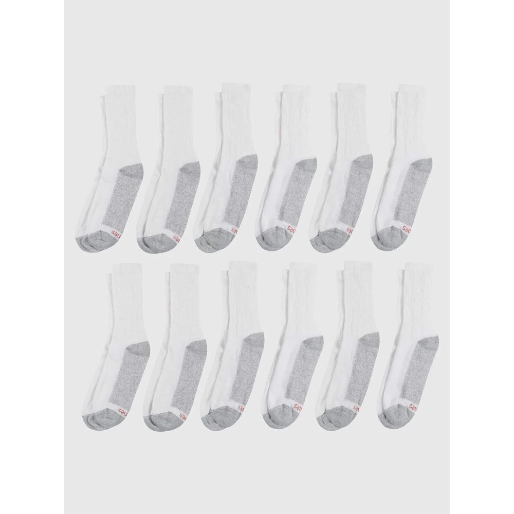 Hanes Men's Double Tough Durability Over-the-Calf Tube Socks, 12-Pack Free Shipping About This Item: Maximum Cushioning (full cushion) Double Tough Durability Wicking Cool Comfort Fabric helps wick moisture and keep feet dry FreshIQ Advanced Odor Technology helps fight stinky feet Spandex for better fit Comfort Toe Seam Fits Men's Shoe Sizes 6-12 49% Cotton, 1% Nylon, 49% Polyester, 1% Spandex Product details Hanes Men's Double Tought Durability Crew Socks, pack a powerful punch with Double Tough durability and maximum cushioning throughout entire sock for maximum comfort. Wicking Cool Comfort Fabric will help keep your feet cool and dry. Our FreshIQ Advanced Odor Protection will help fight those stinky feet! Spandex and Comfort Toe Seam will provide comfort and a better fit. Fits Men's shoe sizes 6-12. Big & Tall shoe size 12-14 is also available. On May 14, 2025 at 20:48:33 PDT, seller added the following information: