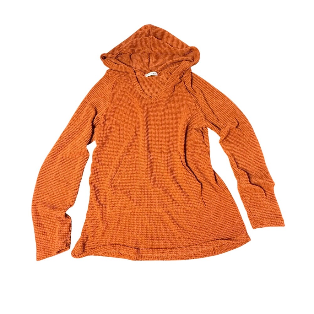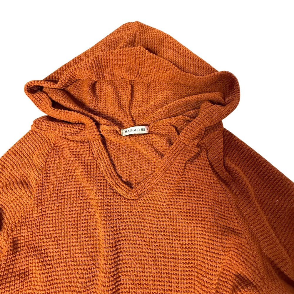 Cozy comfort arrives in this Hanger 55 waffle knit hoodie, a perfect blend of casual style and relaxed vibes. The vibrant orange hue adds a pop of color to your wardrobe, while the soft, textured waffle knit fabric provides warmth and breathability. This pullover features a flattering V-neckline and a comfortable hood, making it ideal for layering or wearing on its own. The relaxed fit ensures all-day comfort, and the long sleeves provide extra coverage. Envision yourself wearing this hoodie on a crisp autumn day, enjoying a pumpkin spice latte at your favorite coffee shop, or snuggling up on the couch for a movie night. Style: Pullover Color: Orange Department: Women Type: Hoodie Closure: Pullover Features: Hooded, Breathable, Lightweight, Easy Care, Comfy Fabric Type: Waffle Knit Material: Cotton Blend Pattern: Solid Sleeve Length: Long Sleeve Neckline: V-Neck Keywords: Hanger 55, waffle knit hoodie, orange hoodie, pullover hoodie, v-neck hoodie, casual hoodie, comfy hoodie, long sleeve hoodie, women's hoodie, XL hoodie, textured hoodie, fall fashion, winter fashion, loungewear, relaxed fit Lover of all things: Vintage Y2K Yellowstone retro Restyled refashioned upcycled kitsch eclectic remade reimagined handmade homemade artist prairie chic boho festival farmers market