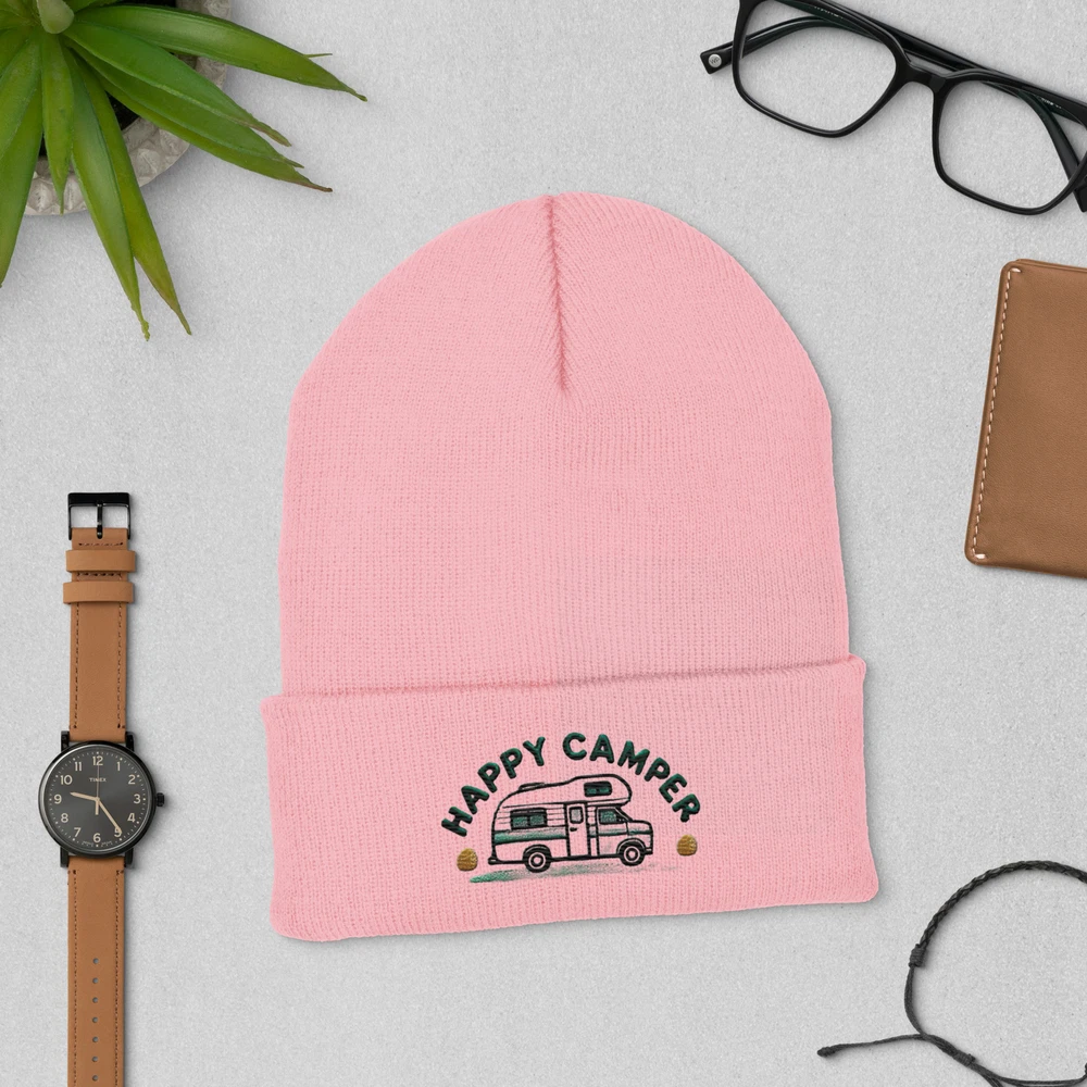 Stay warm and stylish with our Happy Camper Embroidered Cuffed Beanie! This snug, form-fitting beanie is the ultimate head-warming accessory, perfect for chilly days and outdoor adventures. Made from 100% Turbo Acrylic, it offers a soft and cozy feel that’s hypoallergenic and suitable for everyone. With a length of 12″ (30 cm), this unisex beanie fits comfortably and securely, making it a versatile addition to any wardrobe. Plus, it’s hand washable, ensuring easy care for your favorite winter accessory. Whether you’re camping in the great outdoors or just enjoying a casual day in town, this embroidered beanie lets you showcase your love for adventure while keeping you warm and stylish!orea This product is made especially for you as soon as you place an order, which is why it takes us a bit longer to deliver it to you. Making products on demand instead of in bulk helps reduce overproduction, so thank you for making thoughtful purchasing decisions! • 100% Turbo Acrylic • 12″ (30 cm) in length • Hypoallergenic • Unisex style • Hand washable • Blank product sourced from Vietnam, Bangladesh or the Republic of Korea Size guide A (inches) B (inches) C (inches) D (inches) One size 17 ¼-18 ½ 8 ⅝ 3 8 ⅛