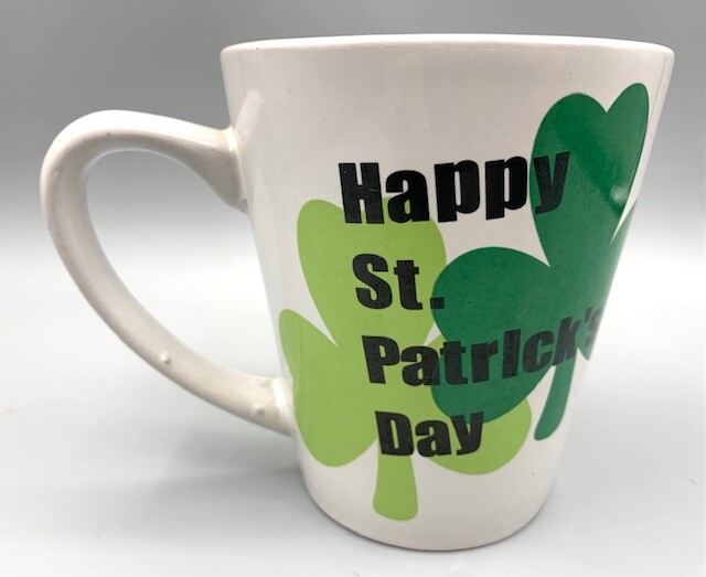For Sale is (1): Happy St. Patrick's Day Clover Design Coffee Tea Mug by Deluxe Imports Nice. See photos for condition of mug. Track Page Views With Auctiva's FREE Counter