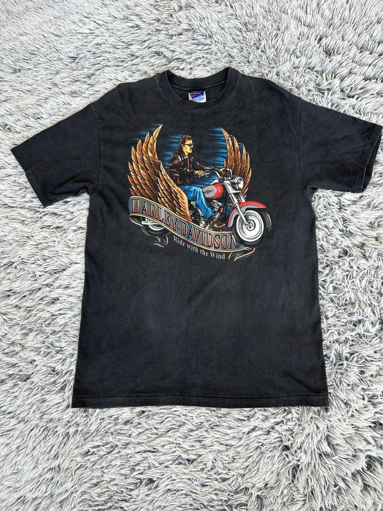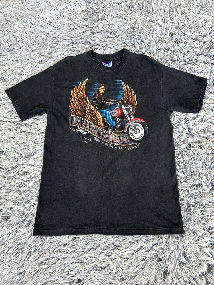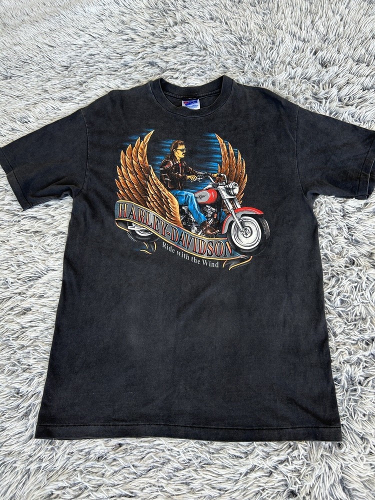 Harley Davidson Shirt Mens Large Ride With The Wind Single Stitch Vintage 1994. Size Large. A few moth holes. Item is in good condition. Please feel free to ask any questions. Will ship out within 3 days with a tracking number for confirmation.