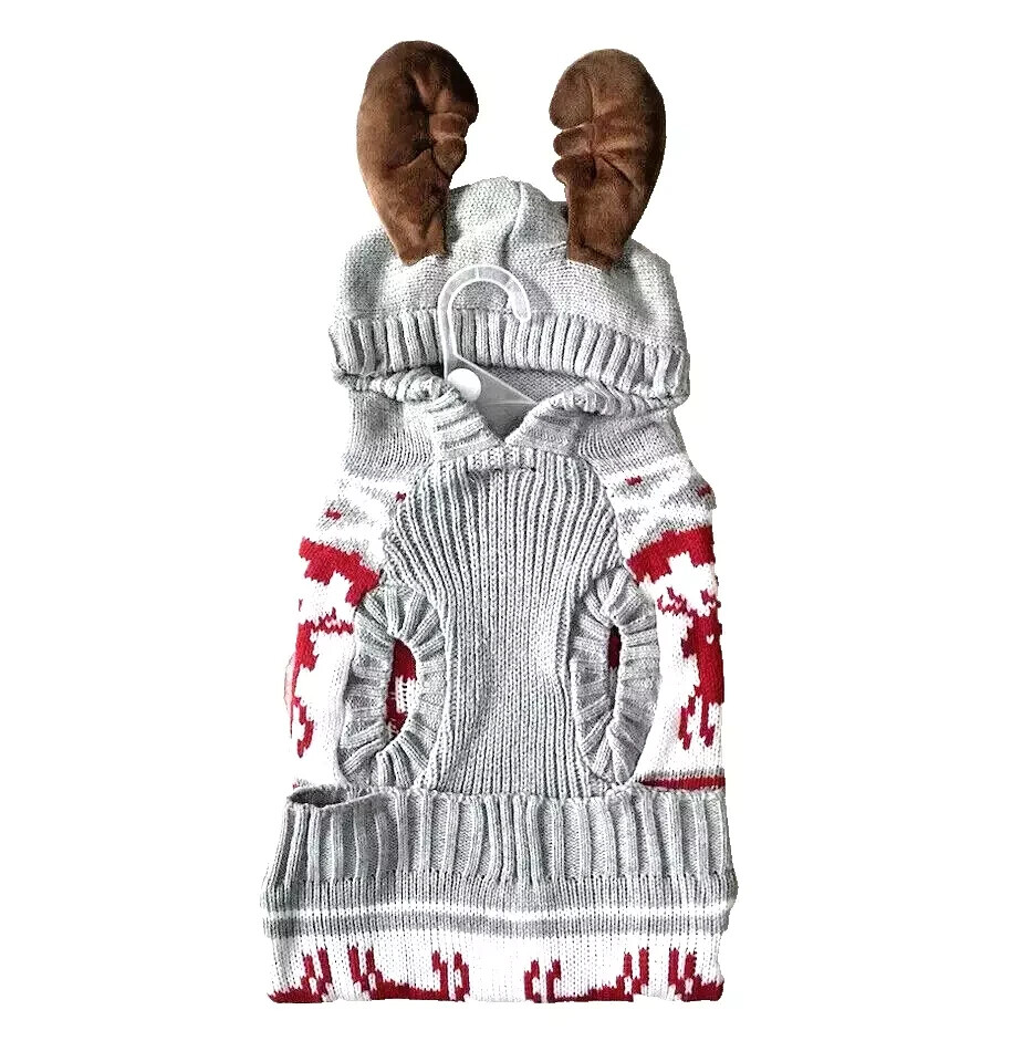 CUTE gray reindeer sweater with Antlers. Please take time to see all my great PET items in my E-bay store. Buy with confidence! I have had my E-bay store for nearly 20 years with 100% positive feedback. I carry great gift and collector items. Please add me to your favorite store list. Also sign up for my store e-mail that comes out once every 2 weeks to see new items. If you have any questions please message me. Thanks for looking and I hope to do business with you soon. SMOKE FREE HOME I WILL COMBINE SHIPPING ON ALL MY ITEMS FOR YOU!