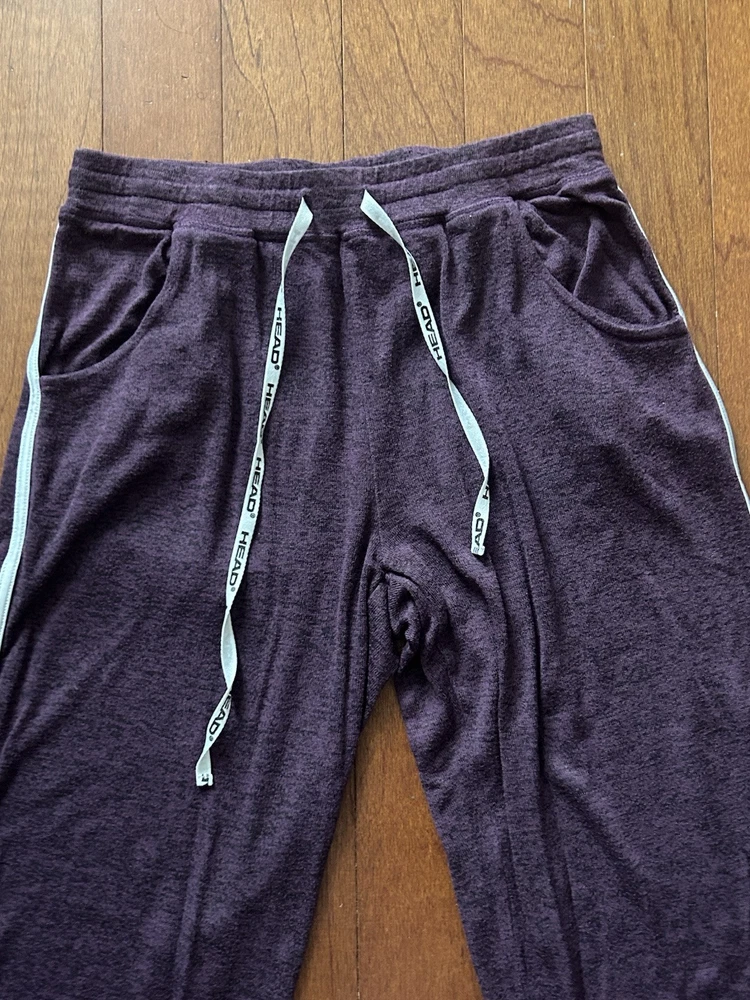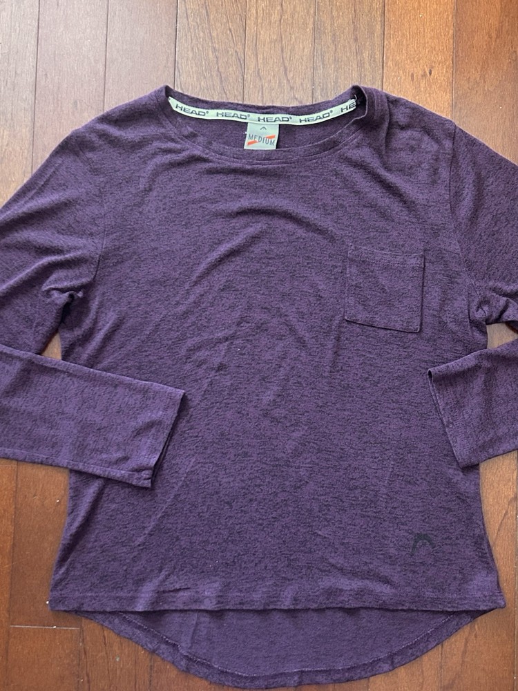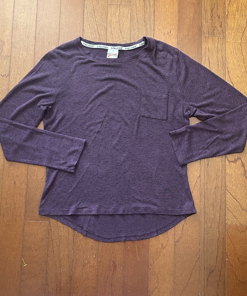 This is a women's pajama set by HEAD in size Medium. The set includes a long sleeve top and pants, both in a solid Purple color. Made of Polyester and Spandex, the pajamas are lightweight, making them ideal for lounging. The design is classic and cozy, perfect for a comfortable and relaxing night's sleep.
