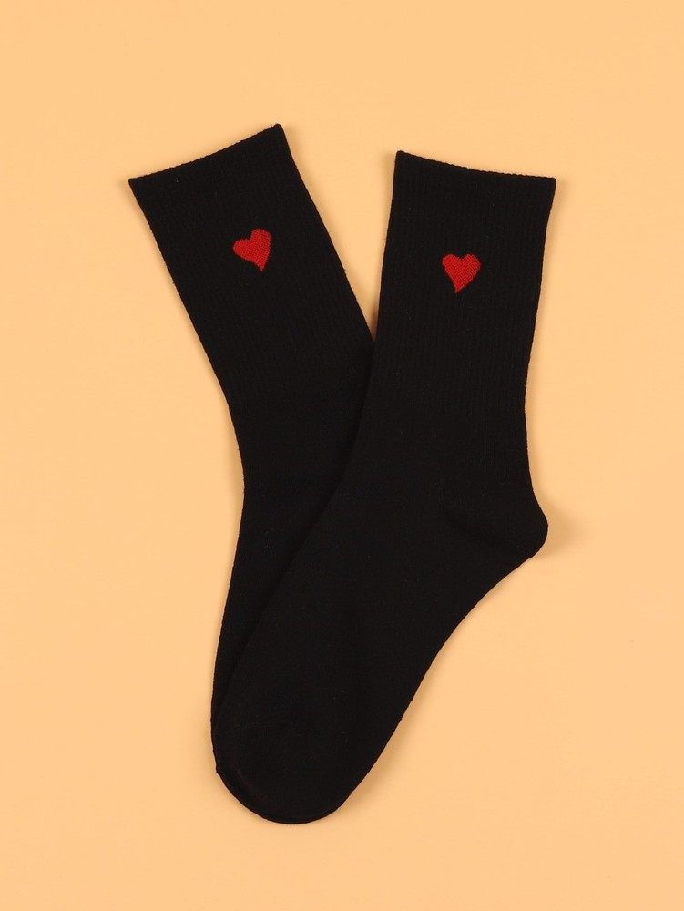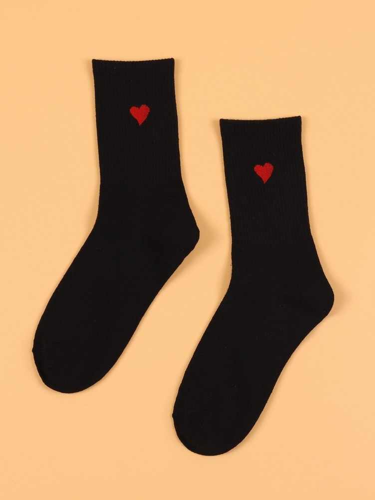 Color: Black Composition: 100% Polyester Material: Fabric Pattern Type: Heart Socks Quantity: Single Pair Type: Crew Socks Care Instructions: Machine wash or professional dry clean Gender: Women Product Measurements in cm : Size Height Length Width one-size 17 18 8 Heart Black Crew Socks for Women Plain Socks Cozy Socks Fashion Socks Here we have our vibrant and playful line of Socks, where fun and fashion collide! These socks are designed to add a touch of joy and individuality to your wardrobe. With a wide range of unique patterns, bold colors, and quirky designs, our Socks are the perfect accessory to showcase your personality and make a statement. Key Features: Comfortable Fit: We understand the importance of comfort, which is why our socks are made with soft, breathable materials that provide a cozy and snug fit. They feature a blend of high-quality fabrics that keep your feet comfortable throughout the day, making them perfect for both lounging around and stepping out in style. Great Conversation Starters: Get ready for compliments when you step out wearing our Socks. These attention-grabbing accessories are excellent conversation starters and ice-breakers, sparking interactions and creating memorable moments wherever you go. Perfect Gift Idea: Looking for a fun and unique gift? Our Novelty Socks make an excellent choice. Whether it's for a birthday, holiday, or just to surprise someone special, these socks are sure to bring a smile to their face. Give the gift of joy and individuality with our playful and stylish socks. Durable Quality: We take pride in crafting socks that not only look great but also stand the test of time. Our Socks are made with high-quality materials and constructed with care to ensure durability and long-lasting enjoyment. Let your feet do the talking and embrace your unique style with every step. Upgrade your sock collection and add a splash of fun to your outfits. Get ready to turn heads and spread smiles wherever you go! Product: Heart Black Crew Socks for Women Plain Socks Cozy Socks Fashion Socks