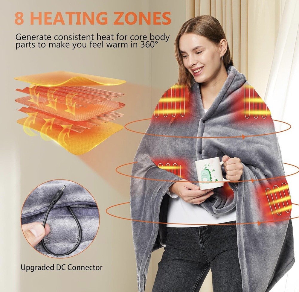 Heated Blanket with Power Bank, 59" x 35" Cozy Soft Cordless Heated Blanket