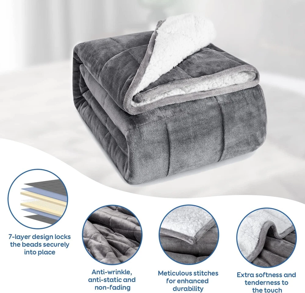 Heavenly Sherpa Weighted Blanket 15 lbs Twin Size - Soft and Cozy for Napping ‹ › ‹ › ‹ › ‹ › ‹ › ‹ › ‹ › ‹ › ‹ › ‹ › Heavenly Sherpa Weighted Blanket - 15 lbs Twin Size Experience unparalleled comfort and relaxation with our Heavenly Sherpa Weighted Blanket. Designed for those who cherish coziness, this blanket transforms your napping experience into a cloud-like retreat. Unmatched Comfort: Dual-Sided Design: Savor the luxuriously soft touch of 220 GSM smooth fleece on one side and the fluffy warmth of 220 GSM Sherpa on the other. Perfect for Various Activities: Ideal for napping, watching TV, or enjoying outdoor moments, this blanket envelops you in comfort. Enhance Your Sleep Quality: Weighted Cuddle: Gently cradles your body, promoting relaxation and restful sleep, banishing tossing and turning to the past. Natural Sleep Booster: Designed to help you indulge in the quality sleep you truly deserve. Durable & Easy Maintenance: Fade and Stain Resistant: Retains its luxurious look and feel, remaining as good as new even after years of use. Simple Care: Spot clean or machine wash it easily; recommended to hang dry or tumble dry on low heat if needed. Premium Craftsmanship: 7-Layer Design: Made with a safe and natural ceramic bead filling that locks into smaller compartments, ensuring an even weight distribution. Extra Fabric Layer: Prevents leakage and rustling, letting you enjoy the peacefulness of your blanket hassle-free. Choose Wisely & Lifetime Support: Recommended Weight: Choose a blanket around 8% to 10% of your body weight for optimal comfort. Adjustment Period: Give yourself 2 to 7 days to adapt to the weight—start lighter if preferred. Perfect Fit: Sized to cover just your body, our blankets fit snugly on your mattress without draping over the sides. Why Choose the Heavenly Sherpa Weighted Blanket? This luxurious weighted blanket isn't just an accessory; it’s a lifestyle upgrade. Immerse yourself in the soft embrace of the Sherpa fleece and experience the deep restorative sleep you crave. Whether for yourself or as a thoughtful gift for loved ones, this blanket promises quality, comfort, and satisfaction. Transform your relaxation routine today with the Heavenly Sherpa Weighted Blanket! Shipping Free & Fast Shipping - We offer free shipping to most of the USA with a normal delivery time of 3-7 days. However, due to the current situation, additional delivery time (up to 3 weeks) may be required for some items. Alternative Carriers - We may use alternative carriers (e.g. USPS, FedEx, UPS, etc.) to ensure your package arrives safely and on time. Due to the use of multiple carriers, we are unable to provide a tracking number automatically. Handling Time - Orders are processed and shipped within 1-2 business days of receiving cleared payment. Shipping Restrictions - Shipping to Alaska, Hawaii, Puerto Rico, Guam, and other US territories may incur shipping charges or delivery restrictions. Please contact us before ordering, or your order can be refunded/cancelled. State Restrictions - There may be restrictions based on your state of purchase. For example, certain items may not be shipped to California due to state regulations. Contact for Tracking Updates - If you require tracking updates or have any concerns about the delivery of your order, please feel free to contact us, and we will be happy to assist you. Return 30-Day Hassle-Free Returns - We want you to be completely satisfied with your purchase. If you are not, you can return the item within 30 days of receiving it for a full refund or exchange. Easy Return Process - To start a return, simply contact us and we will provide you with a prepaid return shipping label and detailed instructions. Restocking Fee - There are no restocking fees for returns. However, the buyer is responsible for return shipping costs if the return is not due to a seller's error. Refund Processing Time - Refunds will be processed within 5 business days of receiving the returned item in its original condition. Payment We accept all major credit cards, PayPal, and Apple Pay for your convenience. Your payment information is secure and encrypted to ensure a safe and seamless transaction. Please complete your payment within 3 days of purchase to avoid any delays in shipping. Feedback Your feedback is extremely important to us. We strive to provide the best products and customer service possible. If you are satisfied with your purchase, please take a moment to leave us a positive review. If you have any concerns or issues with your order, please contact us before leaving negative feedback. We are committed to resolving any problems and ensuring your satisfaction. Contact Us If you have any questions or concerns, please feel free to reach out to our customer support team. You can contact us through the eBay messaging system. We are available Monday to Friday, 9:00 am to 5:00 pm EST, and we will do our best to respond to your inquiry within 24 hours. Buy it now and enjoy a pleasant shopping experience! UPC: Not Set Item Length: Not Set Item Width: Not Set Unit Quantity: 15 Material: Flannel,Fleece,Sherpa Features: Antistatic,Weighted,Fade Resistant,Stain Resistant,Warm,Wrinkle Resistant Theme: Plain Character: Not Set Care Instructions: Machine Wash Department: Adults Room: Bedroom Labels & Certifications: Not Set Brand: Unbranded Size: Twin Type: Weighted Blanket Color: White Grey Character Family: Not Set Pattern: Solid Style: Modern MPN: Not Set Shape: Rectangular Country/Region of Manufacture: Not Set Insulation: Warm Closure Type: No Closure Product Line: Not Set GSM (Grams per Square Meter): 220 Drop Length: Not Set Model: Not Set Thread Count: Not Specified Unit Type: lb Personalize: Not Set