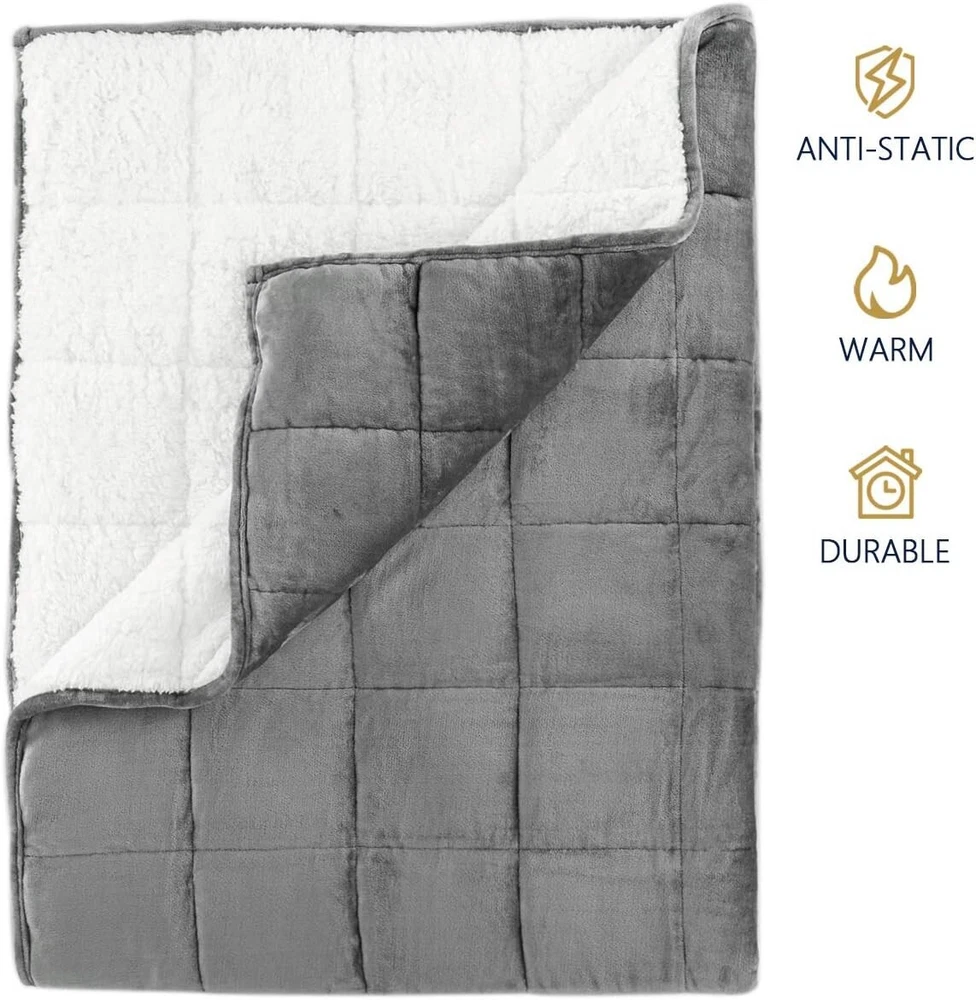Heavyweight 15lbs Sherpa Blanket for Adults - Cozy Comfort for Restful Sleep < class="slides"> ‹ › ‹ › ‹ › ‹ › ‹ › ‹ › ‹ › ‹ › ‹ › ‹ › Heavyweight 15lbs Sherpa Blanket for Adults Experience Cozy Comfort for Restful Sleep Features: <> Tactile Softness: Plush Sherpa top pairing fluffy fleece reverse, enveloping you in a cloud-like comfort while watching TV, napping, or enjoying leisure time outdoors. Giftable: Sharing is caring, make this a perfect gift for your loved ones. Tight Sleep Made Simple: Struggling with restful sleep? This provides a soothing touch for improved sleep quality. Meticulously Crafted: Firm polyester fiber layers secure safe ceramic beads in place, avoiding leakage, while maintaining even distribution for a cuddle-like embrace to enhance sleep. Choose Your Blanket Wisely: Weight recommendation is 7%-13% of your body weight. Our 15lbs blanket is ideal for adults weighing 130-180lbs, measuring 60" x 80", designed for personal use and relaxation. Customers First: Sourced materials are of the highest standards, free from harmful chemicals. Easy care with hand washing recommended. Benefits: <> Indulge in the plush softness and warmth, perfect for cozy evenings. Enhance your sleep quality with the soothing, gentle pressure of a . Crafted for durability with evenly distributed beads for consistent comfort. Ideal for personal relaxation, offering a perfect sanctuary for restful sleep. Easy care - a low maintenance blanket that fits seamlessly into your lifestyle. Why choose our Sherpa ? If you're seeking a way to enhance your sleeping experience, look no further. Our Heavyweight Sherpa Blanket combines the softness of plush Sherpa with the calming effects of weight, providing a perfect solution for those restless nights. Enjoy the warmth and gentle pressure to fall asleep faster and stay asleep longer. Embrace comfort and luxury with this heavyweight Sherpa blanket - order now and transform your sleep into a restorative experience! Shipping <> <> Free & Fast Shipping - We offer free shipping to most of the USA with a normal delivery time of 3-7 days. However, due to the current situation, additional delivery time (up to 3 weeks) may be required for some items. Alternative Carriers - We may use alternative carriers (e.g. USPS, FedEx, UPS, etc.) to ensure your package arrives safely and on time. Due to the use of multiple carriers, we are unable to provide a tracking number automatically. Handling Time - Orders are processed and shipped within 1-2 business days of receiving cleared payment. Shipping Restrictions - Shipping to Alaska, Hawaii, Puerto Rico, Guam, and other US territories may incur shipping charges or delivery restrictions. Please contact us before ordering, or your order can be refunded/cancelled. State Restrictions - There may be restrictions based on your state of purchase. For example, certain items may not be shipped to California due to state regulations. Contact for Tracking Updates - If you require tracking updates or have any concerns about the delivery of your order, please feel free to contact us, and we will be happy to assist you. Return <> <> 30-Day Hassle-Free Returns - We want you to be completely satisfied with your purchase. If you are not, you can return the item within 30 days of receiving it for a full refund or exchange. Easy Return Process - To start a return, simply contact us and we will provide you with a prepaid return shipping label and detailed instructions. Restocking Fee - There are no restocking fees for returns. However, the buyer is responsible for return shipping costs if the return is not due to a seller's error. Refund Processing Time - Refunds will be processed within 5 business days of receiving the returned item in its condition. Payment We accept all major credit cards, PayPal, and Apple Pay for your convenience. Your payment information is secure and encrypted to ensure a safe and seamless transaction. Please complete your payment within 3 days of purchase to avoid any delays in shipping. Feedback Your feedback is extremely important to us. We strive to provide the best products and customer service possible. If you are satisfied with your purchase, please take a moment to leave us a positive review. If you have any concerns or issues with your order, please contact us before leaving negative feedback. We are committed to resolving any problems and ensuring your satisfaction. Contact Us If you have any questions or concerns, please feel free to out to our customer support team. You can contact us through the eBay messaging system. We are available Monday to Friday, 9:00 am to 5:00 pm EST, and we will do our best to respond to your inquiry within 24 hours. Buy it now and enjoy a pleasant shopping experience! Unit Quantity: 15 Material: Flannel,Fleece,Polyester,Sherpa Features: Weighted,Tactile Softness,Plush,Multiple Levels of Softness,Firm Polyester Fiber Layers,Ceramic Beads,Evenly Distributed Beads,Cuddle-like Pressure,Improves Sleep,Durable Theme: Plain Care Instructions: Hand Wash,Machine Wash,Spot Cleaning,Do Not Iron Department: Adults Room: Bedroom,Outdoor Size: 48 x 72 in Type: Weighted Blanket Color: Grey/White Pattern: Solid Style: Modern Shape: Rectangular Insulation: All Seasons Closure Type: No Closure GSM (Grams per Square Meter): Below 150 Thread Count: 200 or Less Unit Type: lb