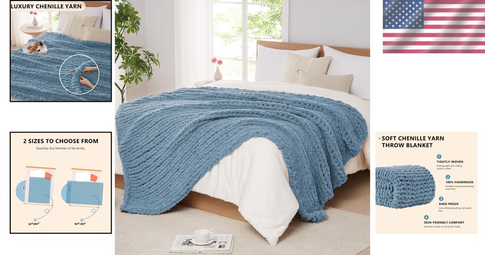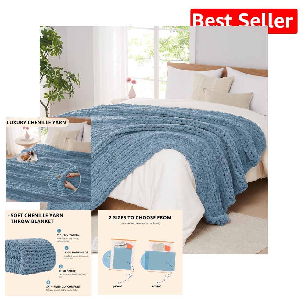 Heavyweight Airy Blue Chenille Throw Blanket - 60"x80" Handmade Cozy Comfort ‹ › ‹ › ‹ › ‹ › ‹ › ‹ › ‹ › ‹ › ‹ › Heavyweight Airy Blue Chenille Throw Blanket Size: 60" x 80" 100% Handmade : Made from 100% hand-woven Chenille yarn, this exquisite throw blanket envelops you in warmth and tenderness. Each intricate knit enhances the blanket's density, providing an irresistibly soft touch - a perfect full-body hug for ultimate comfort. Features: Durable and long-lasting, it withstands multiple uses without shedding or pilling. Breathable design with neatly arranged small holes, ensuring warmth without compromising airflow. Available in 6 sizes and various colors, catering to both children and adults alike. Exquisite gift option, ideal for birthdays, holidays, or simply to show someone you care. Machine washable for hassle-free maintenance; use a laundry mesh bag for protection. Benefits: Unmatched softness and luxurious feel, akin to clouds against your skin. Hypoallergenic properties make it suitable for sensitive skin. Versatile design doubles as a stylish decorative piece in any room. Perfect for napping, reading, or enjoying cozy evenings with loved ones. Why Choose Our Chenille Throw Blanket? Drape yourself in the comfort of our Heavyweight Airy Blue Chenille Throw Blanket. This handcrafted piece transcends mere functionality, offering a touch of bohemian style while keeping you warm and cozy. Whether you use it to enhance your living space or as a heartfelt gift, this blanket is sure to convey your love and care. Embrace the ultimate relaxation and indulge yourself or a loved one with this luxurious addition to your home. Make every moment special - order your luxurious chenille blanket today! Shipping Free & Fast Shipping - We offer free shipping to most of the USA with a normal delivery time of 3-7 days. However, due to the current situation, additional delivery time (up to 3 weeks) may be required for some items. Alternative Carriers - We may use alternative carriers (e.g. USPS, FedEx, UPS, etc.) to ensure your package arrives safely and on time. Due to the use of multiple carriers, we are unable to provide a tracking number automatically. Handling Time - Orders are processed and shipped within 1-2 business days of receiving cleared payment. Shipping Restrictions - Shipping to Alaska, Hawaii, Puerto Rico, Guam, and other US territories may incur shipping charges or delivery restrictions. Please contact us before ordering, or your order can be refunded/cancelled. State Restrictions - There may be restrictions based on your state of purchase. For example, certain items may not be shipped to California due to state regulations. Contact for Tracking Updates - If you require tracking updates or have any concerns about the delivery of your order, please feel free to contact us, and we will be happy to assist you. Return 30-Day Hassle-Free Returns - We want you to be completely satisfied with your purchase. If you are not, you can return the item within 30 days of receiving it for a full refund or exchange. Easy Return Process - To start a return, simply contact us and we will provide you with a prepaid return shipping label and detailed instructions. Restocking Fee - There are no restocking fees for returns. However, the buyer is responsible for return shipping costs if the return is not due to a seller's error. Refund Processing Time - Refunds will be processed within 5 business days of receiving the returned item in its condition. Payment We accept all major credit cards, PayPal, and Apple Pay for your convenience. Your payment information is secure and encrypted to ensure a safe and seamless transaction. Please complete your payment within 3 days of purchase to avoid any delays in shipping. Feedback Your feedback is extremely important to us. We strive to provide the best products and customer service possible. If you are satisfied with your purchase, please take a moment to leave us a positive review. If you have any concerns or issues with your order, please contact us before leaving negative feedback. We are committed to resolving any problems and ensuring your satisfaction. Contact Us If you have any questions or concerns, please feel free to out to our customer support team. You can contact us through the eBay messaging system. We are available Monday to Friday, 9:00 am to 5:00 pm EST, and we will do our best to respond to your inquiry within 24 hours. Buy it now and enjoy a pleasant shopping experience! Unit Quantity: 6.51 Material: Chenille,100% Polyester Features: Breathable,Chunky Knit,Hypoallergenic,Machine Washable Theme: Chunky Knit Blanket Care Instructions: Machine Wash Department: Unisex Baby & Toddler,Kids,Teens,Adults Room: Bedroom,Living Room Size: 60 x 80 in Type: Throw Blanket Color: Airy Blue Pattern: Solid Style: Modern Shape: Rectangular Insulation: Warm Closure Type: No Closure GSM (Grams per Square Meter): Over 800 Thread Count: 200 or Less Unit Type: lb