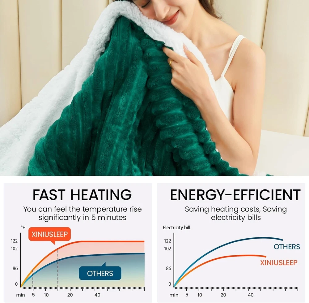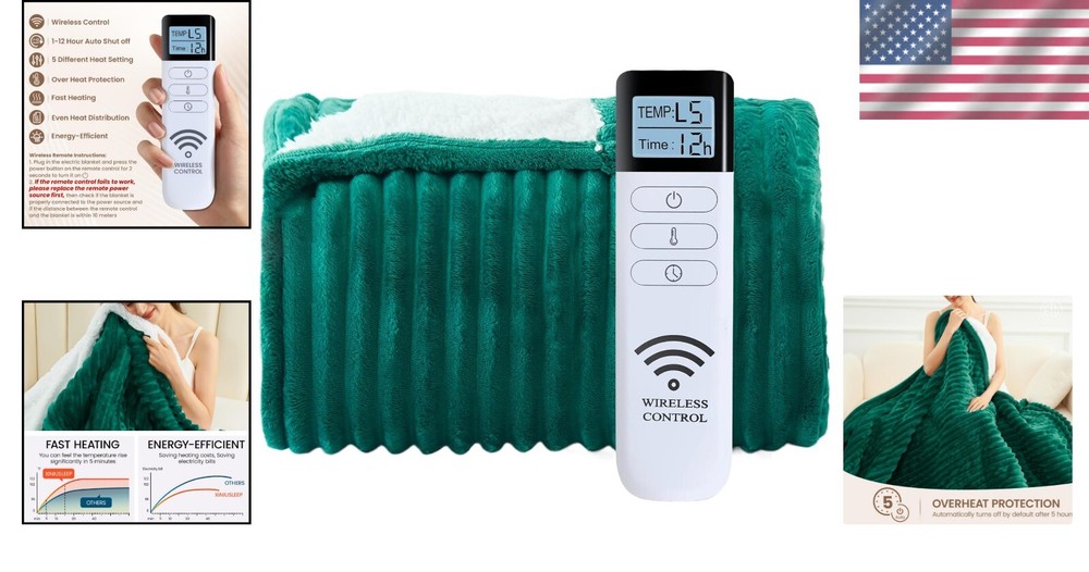 Heavyweight Reversible Electric Throw - Cozy Comfort for Reading and Sleeping < class="slides"> ‹ › ‹ › ‹ › ‹ › ‹ › ‹ › ‹ › ‹ › ‹ › ‹ › ‹ › ‹ › Heavyweight Reversible Electric Throw Cozy Comfort for Reading and Sleeping Safe & Cozy certified for utmost safety and reliability. NTC system ensures real-time temperature adjustments to maintain a constant warmth. Equipped with a 4-hour auto shut-off feature and overheat protection, safeguarding your comfort. Soft & Warm Luxuriously soft flannel sherpa material that caresses your skin. Dense fiber structure enhances warmth and comfort. Quick heating performance with stable, evenly distributed warmth. Choose from 3 convenient temperature settings for personalized comfort. Versatile Use Perfect for draping over your shoulders or wrapping around your legs while reading or relaxing. Transforms your bedding into a warm sanctuary on chilly nights. Ideal for keeping cozy in the office or at home, even in summer—simply detach the controller for regular use. The Best Gift An eco-friendly choice that helps save on heating costs. Gift it to loved ones for a touch of warmth, making it a thoughtful present for any occasion. Warm Tips Avoid immersing the cord and controls in water; the fabric component is machine washable on a gentle cycle. Hand washing is recommended to prolong the life of thermal products. Ensure thorough drying before use and securely connect the controller before plugging in. Why Choose Our Electric Blanket? Experience unparalleled comfort and warmth with our Heavyweight Reversible Electric Throw. Certified for safety and luxuriously soft, this electric blanket transforms your everyday relaxation into a cozy escape. Choose a temperature that suits your mood, and enjoy a versatile solution for any setting. Treat yourself or gift it to a loved one—the perfect accessory for cold nights and chilly days. Embrace warmth and luxury today, and let every moment spent with our electric blanket feel like a comforting embrace! Shipping Free & Fast Shipping - We offer free shipping to most of the USA with a normal delivery time of 3-7 days. However, due to the current situation, additional delivery time (up to 3 weeks) may be required for some items. Alternative Carriers - We may use alternative carriers (e.g. USPS, FedEx, UPS, etc.) to ensure your package arrives safely and on time. Due to the use of multiple carriers, we are unable to provide a tracking number automatically. Handling Time - Orders are processed and shipped within 1-2 business days of receiving cleared payment. Shipping Restrictions - Shipping to Alaska, Hawaii, Puerto Rico, Guam, and other US territories may incur shipping charges or delivery restrictions. Please contact us before ordering, or your order can be refunded/cancelled. State Restrictions - There may be restrictions based on your state of purchase. For example, certain items may not be shipped to California due to state regulations. Contact for Tracking Updates - If you require tracking updates or have any concerns about the delivery of your order, please feel free to contact us, and we will be happy to assist you. Return 30-Day Hassle-Free Returns - We want you to be completely satisfied with your purchase. If you are not, you can return the item within 30 days of receiving it for a full refund or exchange. Easy Return Process - To start a return, simply contact us and we will provide you with a prepaid return shipping label and detailed instructions. Restocking Fee - There are no restocking fees for returns. However, the buyer is responsible for return shipping costs if the return is not due to a seller's error. Refund Processing Time - Refunds will be processed within 5 business days of receiving the returned item in its condition. Payment We accept all major credit cards, PayPal, and Apple Pay for your convenience. Your payment information is secure and encrypted to ensure a safe and seamless transaction. Please complete your payment within 3 days of purchase to avoid any delays in shipping. Feedback Your feedback is extremely important to us. We strive to provide the best products and customer service possible. If you are satisfied with your purchase, please take a moment to leave us a positive review. If you have any concerns or issues with your order, please contact us before leaving negative feedback. We are committed to resolving any problems and ensuring your satisfaction. Contact Us If you have any questions or concerns, please feel free to out to our customer support team. You can contact us through the eBay messaging system. We are available Monday to Friday, 9:00 am to 5:00 pm EST, and we will do our best to respond to your inquiry within 24 hours. Buy it now and enjoy a pleasant shopping experience! Item Length: Heated Electric Blanket Item Width: Heated Electric Blanket Unit Quantity: 1.0 Material: Flannel,Polyester,Sherpa Features: Reversible,Skin Friendly,Fast Heating,Over Heating Protection,Auto Off Theme: Solid Care Instructions: Machine Wash Department: Adults Room: Bedroom Size: 50 x 60 in Type: Throw Blanket Color: Green Pattern: Striped Style: Modern Shape: Rectangular Insulation: Warm Closure Type: No Closure GSM (Grams per Square Meter): Over 800 Thread Count: 200 or Less Unit Type: lb