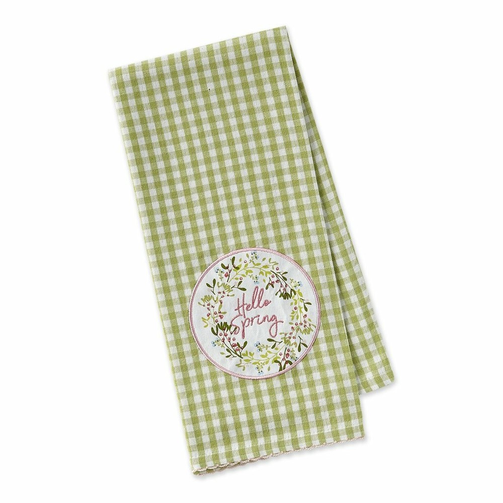Hello Spring Wreath Embellished Green & White Checkered Cotton Dish Towel 18x28 from Design Imports Product Description 18 x 28" | 100% Cotton | Care Instructions: Machine wash cold separately | Gentle cycle | Tumble dry low | Low iron | Wash separately before use Shipping Policy Typically, we ship in 1 business day after payment has been cleared. We ship primarily via USPS Priority Mail or USPS First Class using carrier calculated rates. We do not inflate shipping charges. You pay what we pay for shipping. We ship to all 50 states. Return Policy Our number one goal is to make sure that you are happy and satisfied with your purchase. If you receive a defective product, we will replace the item for you or issue you a full refund. If you simply are not happy with an item, we will gladly accept returns of undamaged items for a refund. Product must be returned within 30 days of receipt. Buyer is responsible for return shipping. Contact Us If, for any reason, you are not satisfied with your purchase, contact us for an easy and quick resolution. If you have any questions or concerns, we are here to help. Customer service is our top priority!