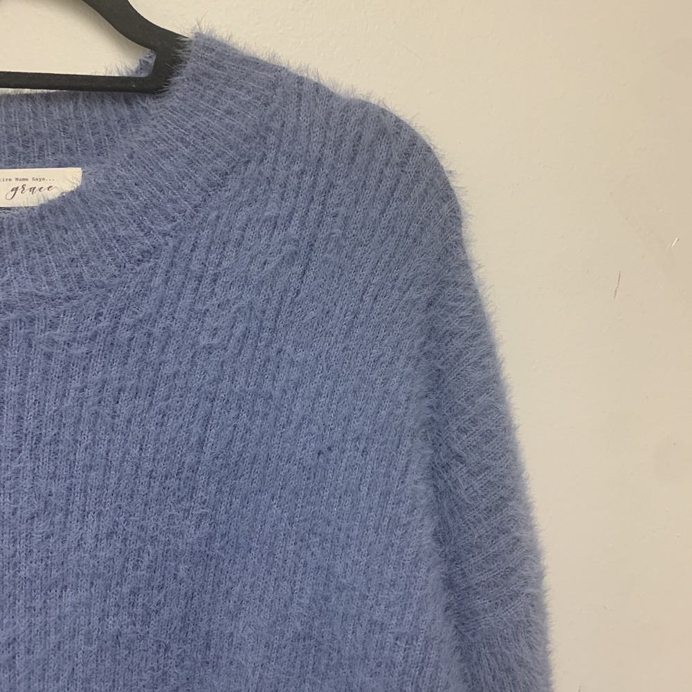 Beautiful Her Entire Name Says Grace Fuzzy Sweater. Oversized. Cozy. Long for bum coverage. Pit to pit approx 24” Shoulder to bottom approx 36”