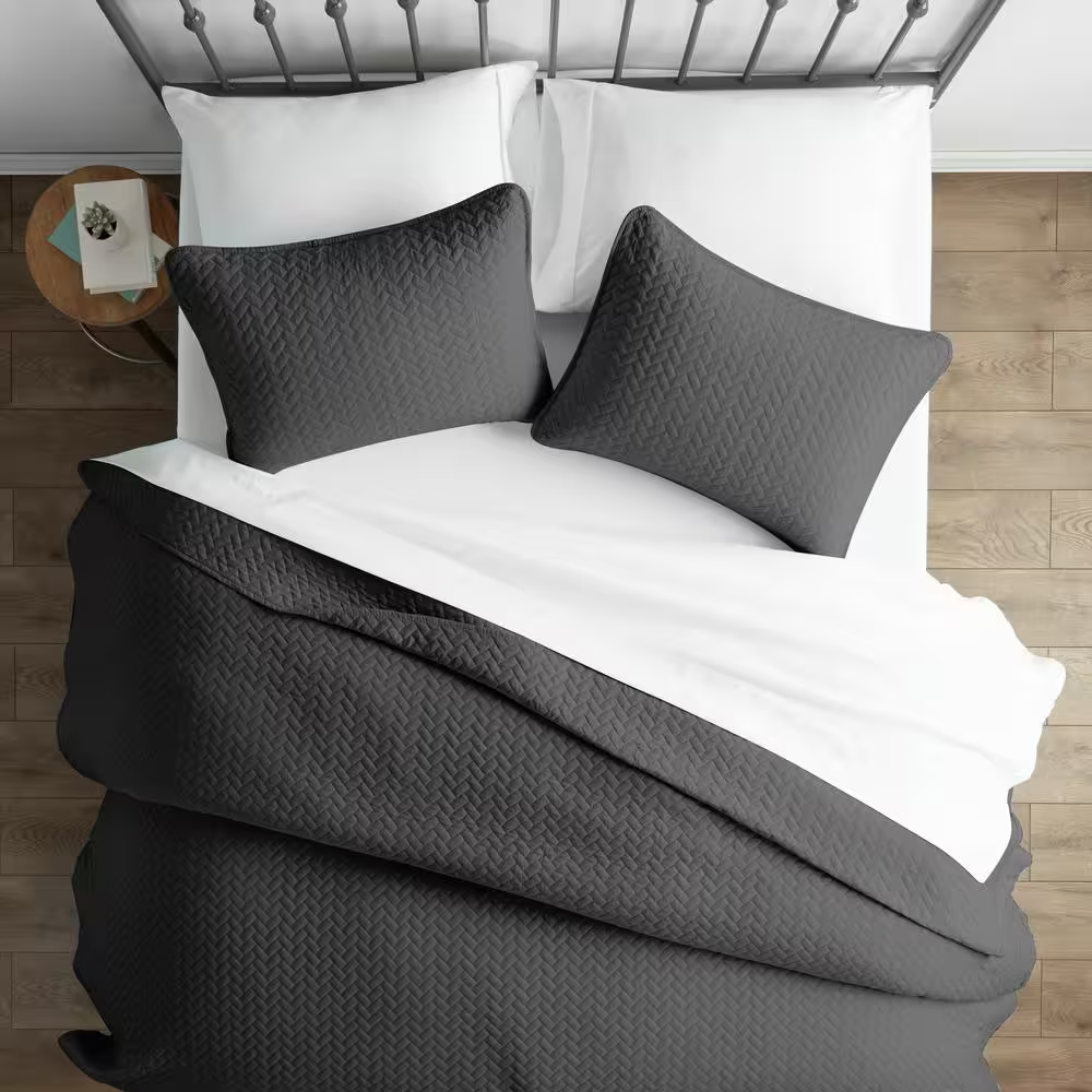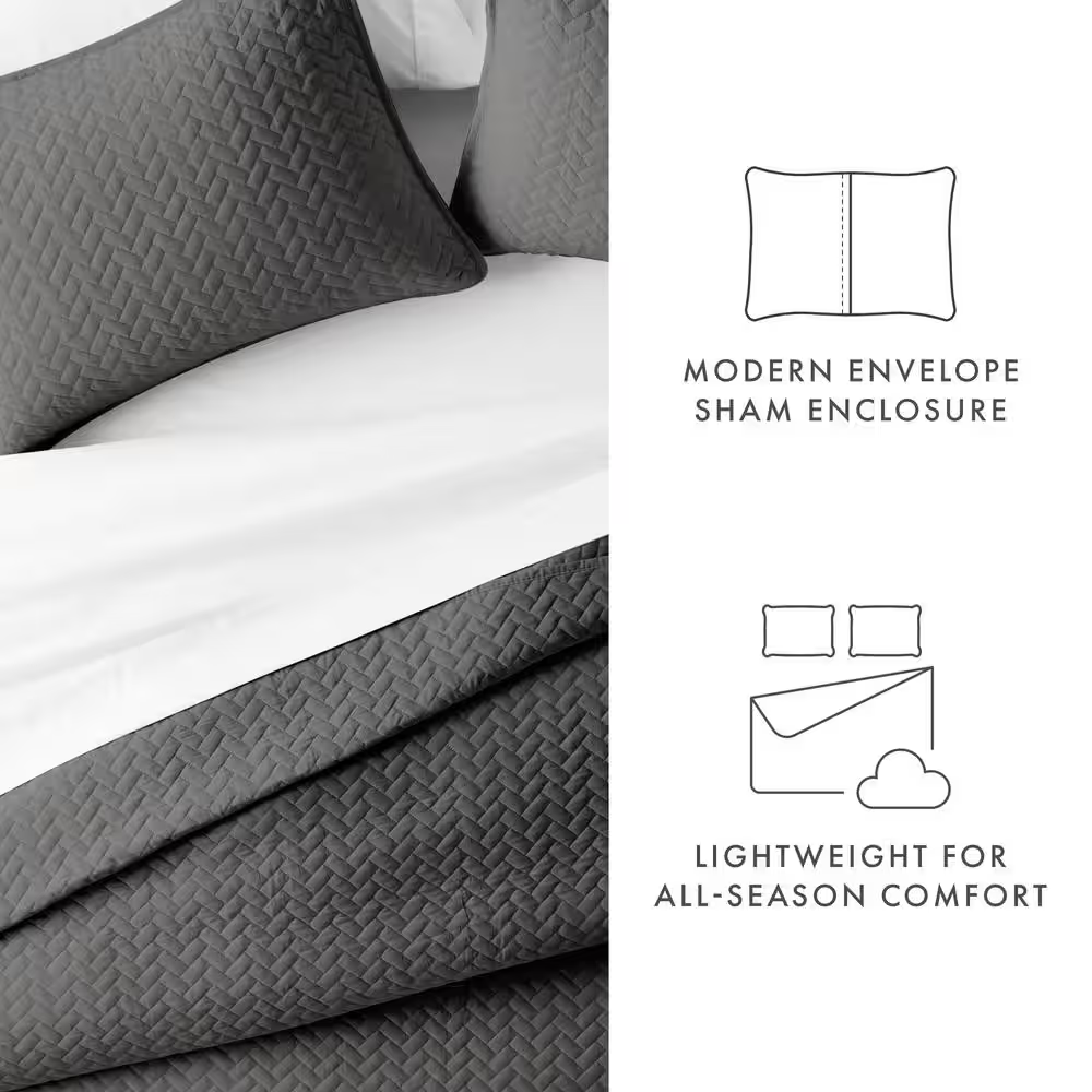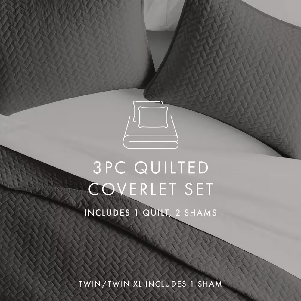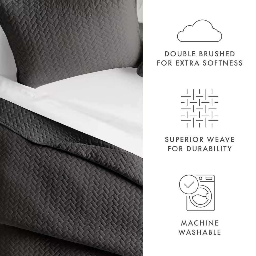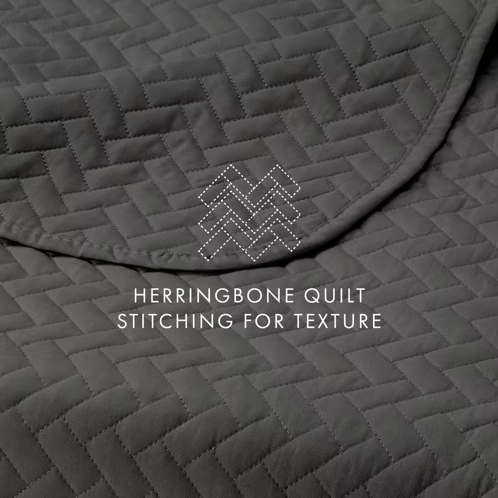 Gray Herringbone Microfiber King Quilted Coverlet Set with Premium Performance