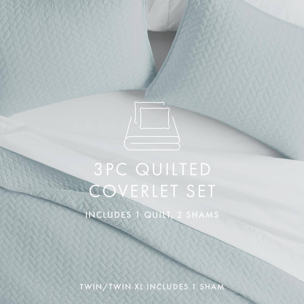 Pale Blue Herring Microfiber King Quilted Coverlet Set