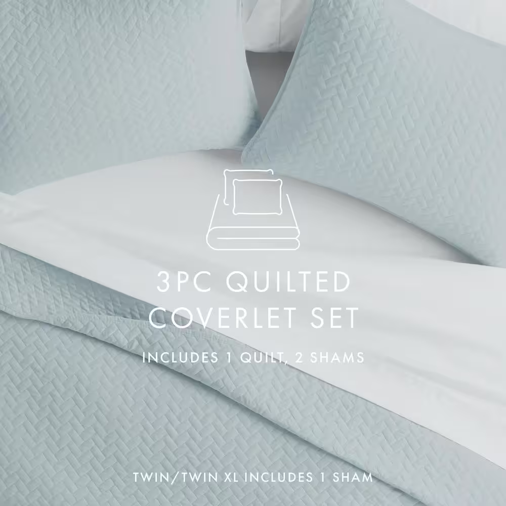 Pale Blue Herring Microfiber Quilted Queen Coverlet Set for Enhanced Performance