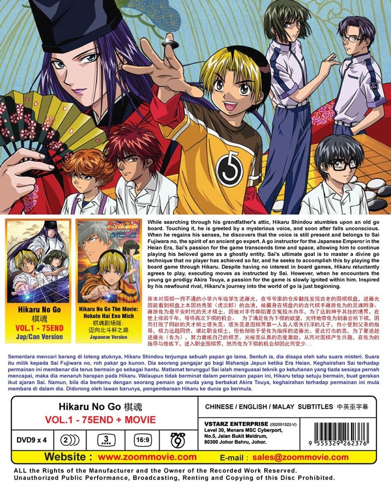 DVD Title Name Hikaru No Go No of Disc 4 Disc (75 Episodes) Version Japanese Subtitles Chinese / English / Malay Format DVD / NTSC & All Region Code (16:9) Shipping and Packaging: Thank you for your interest in our product! We are pleased to offer free international shipping for this item. Please note that international delivery typically takes 2-3 weeks. At The Anime Zone, we prioritize the safe delivery of your orders. Our bubble wrapped packages provide excellent protection for fragile items. Each item is meticulously wrapped in multiple layers of high-quality bubble wrap to absorb shocks during shipping. The package is then placed in a sturdy shipping box for added reinforcement. We work with trusted shipping partners experienced in handling delicate packages. You can track your shipment using the provided tracking number. If you encounter any issues, our dedicated customer support team is here to assist you. Trust The Anime Zone for secure and worry-free shipping.