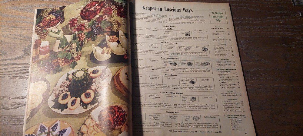 The product is the September 1944 issue of Better Homes and Gardens magazine, focusing on home and garden topics relevant to the news and general interest of the time. This vintage publication includes a special feature like a war bond ad from WW2, making it a unique and collectible item for those interested in historical magazines. The magazine is presented in English and is not signed, making it a great gift for enthusiasts of home and garden publications from the mid-20th century.