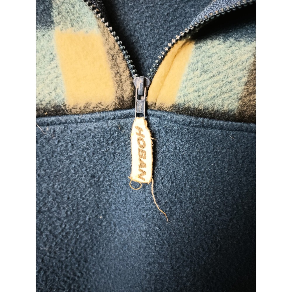 Embrace the cozy comfort of this Hoban fleece pullover, a perfect blend of style and warmth. The rich blue fleece is complemented by a distinctive plaid trim around the collar and upper chest, adding a touch of rustic charm. An embroidered Hoban logo graces the lower front, subtly showcasing the brand's attention to detail. The quarter-zip design allows for adjustable ventilation, making it ideal for layering or wearing on its own. Imagine yourself enjoying a crisp autumn hike or relaxing by a crackling fireplace in this comfortable and stylish pullover. It's also perfect for casual weekend outings or simply lounging at home on a chilly evening. Style: Pullover Department: Men Color: Blue Type: Sweater Material: Polyester Neckline: Collared Fabric Type: Fleece Character: Cozy, Comfy, Casual, Rustic, Outdoorsman Features: 1/4 Zip, Embroidered, Plaid Trim, Cozy, Comfortable Pattern: Plaid Knit Style: Tight-Knit Keywords: fleece pullover, quarter zip, plaid trim, mens fleece, hoban, cozy sweater, casual wear, outdoor apparel, blue fleece, plaid pullover, comfortable fleece, mens sweater, fleece jacket, winter wear