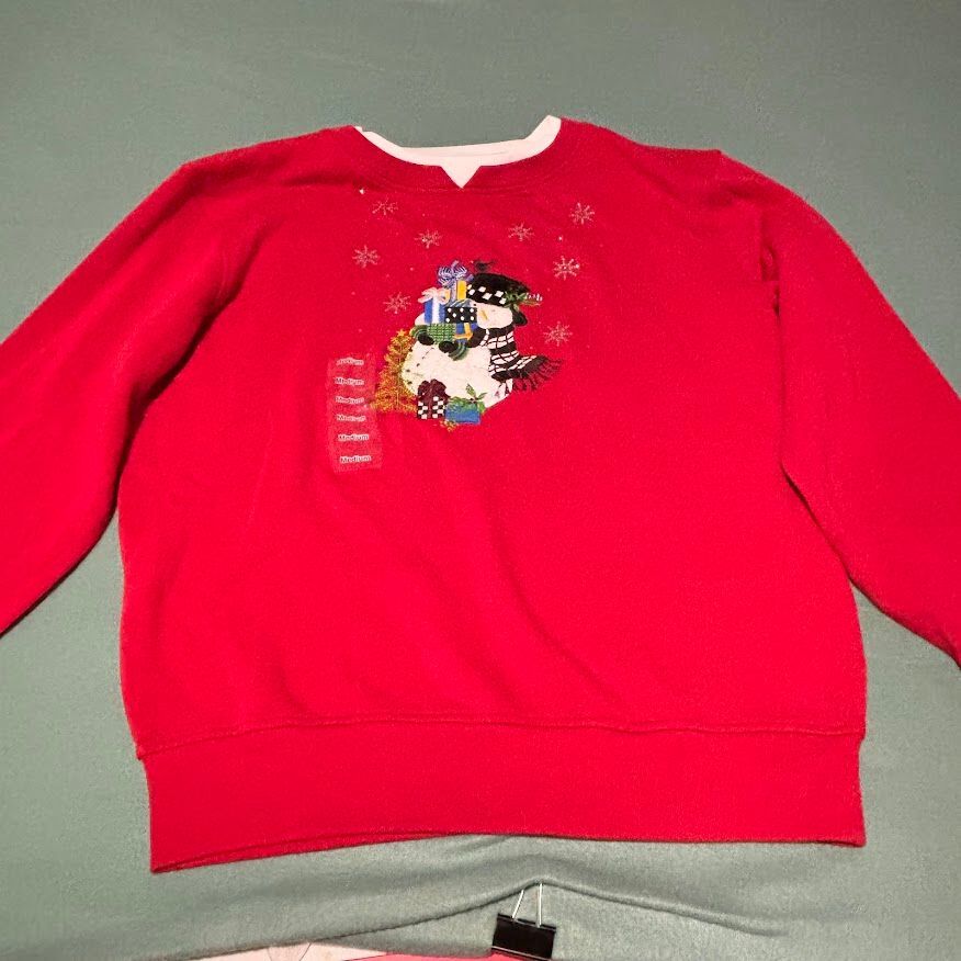 This festive red sweatshirt is an absolute holiday must-have! The adorable embroidered snowman with gifts and snowflakes instantly puts me in the Christmas spirit. Super soft and cozy, it's perfect for winter gatherings or lounging at home. The vibrant red color and quality stitching make it stand out, while the classic fit keeps it comfortable all day. I love how it pairs with jeans or leggings for a cheerful seasonal look. It's become my go-to for holiday parties and makes a fantastic gift too!