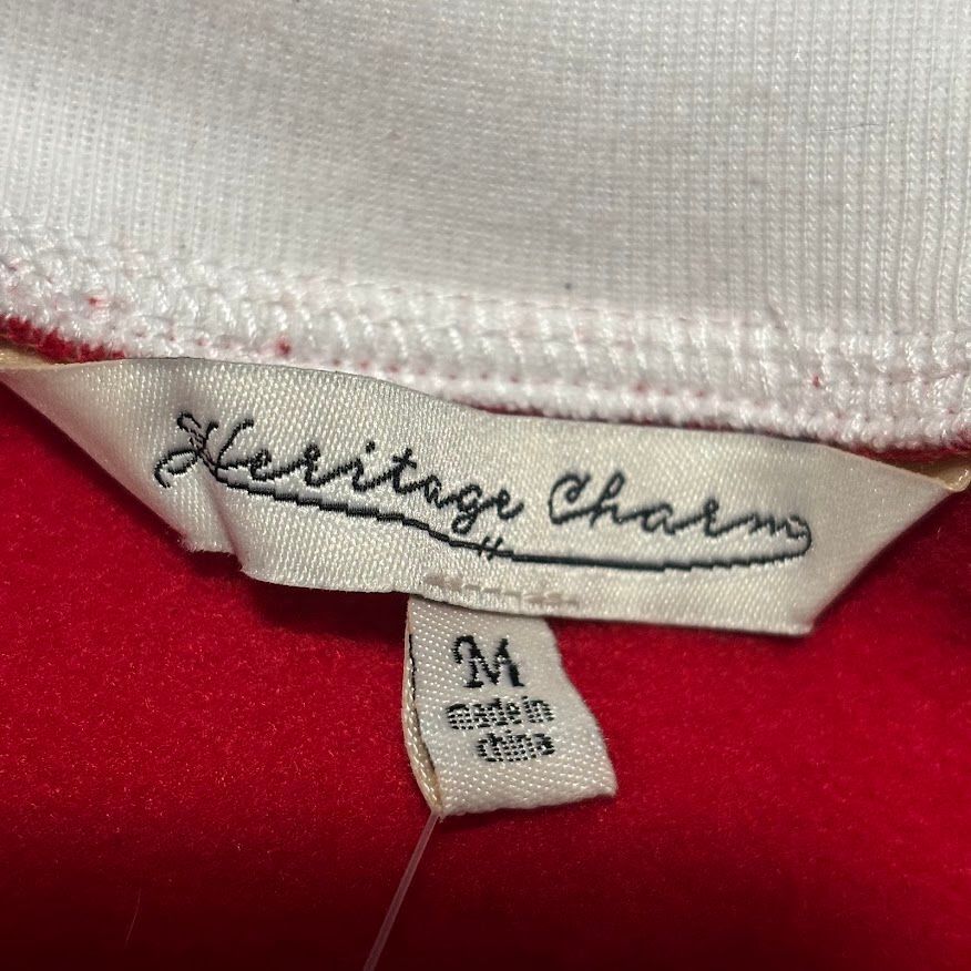 Festive red sweatshirt by Holiday Charm featuring a cheerful snowman design with gifts and snowflakes. Perfect for Christmas parties, winter gatherings, or cozy nights by the fire. The vibrant color and playful embroidery add a touch of whimsy to your holiday wardrobe. Comfortable pullover style with a classic crew neck. Ideal for spreading holiday cheer or as a thoughtful Christmas gift. Keywords: holiday, Christmas, snowman, festive, winter, red, pullover, sweatshirt, embroidered, cozy, Holiday Charm, medium
