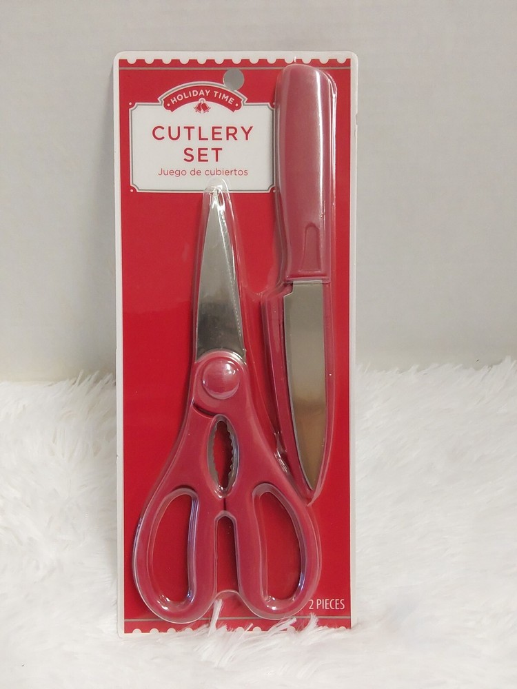 Holiday Time Stainless Steel Cutlery Set W/Plastic Red Handles 3.5" Pairing Knife & Kitchen Shears BNIP! Great kitchen tools for the holidays or anytime. Feel free to ask questions. Thanks for looking! Please check out my other listings and follow me for new items listed daily.