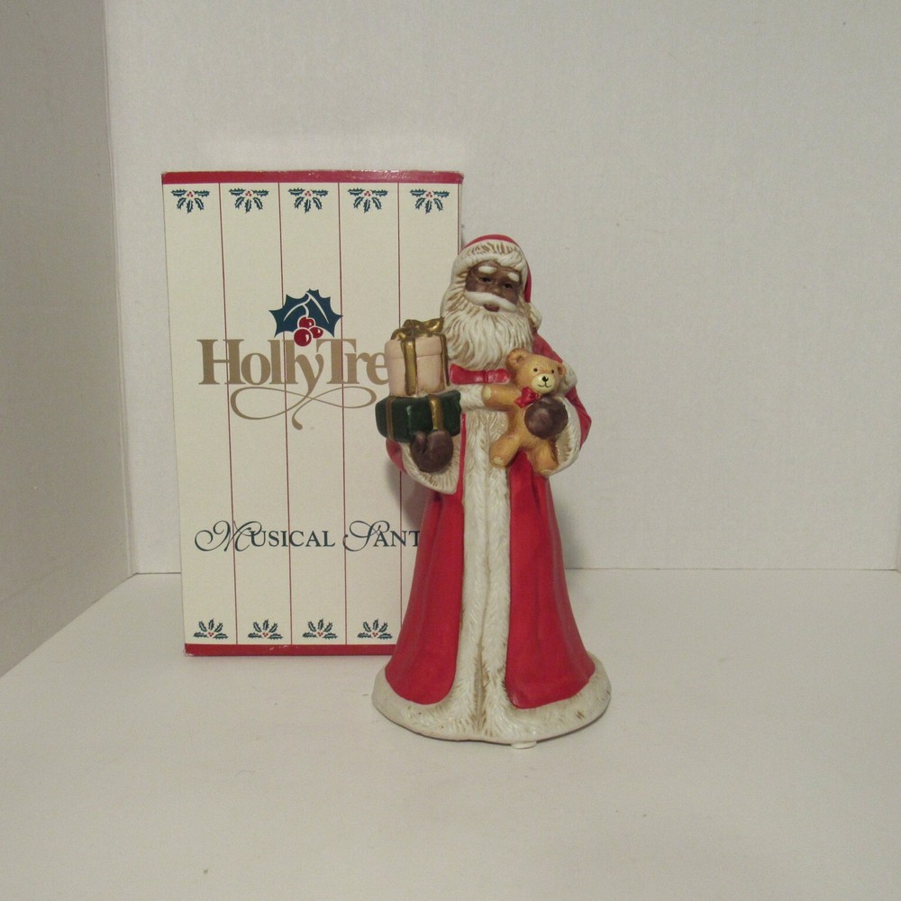 *Pre-owned - Vintage - Circa 1995 - RN: 147CRT *Holly Tree Vintage Musical Wind-up African American Santa Figurine 8" Fast Shipping/One Day Handling Note: Please visit and save/follow my store to see ...