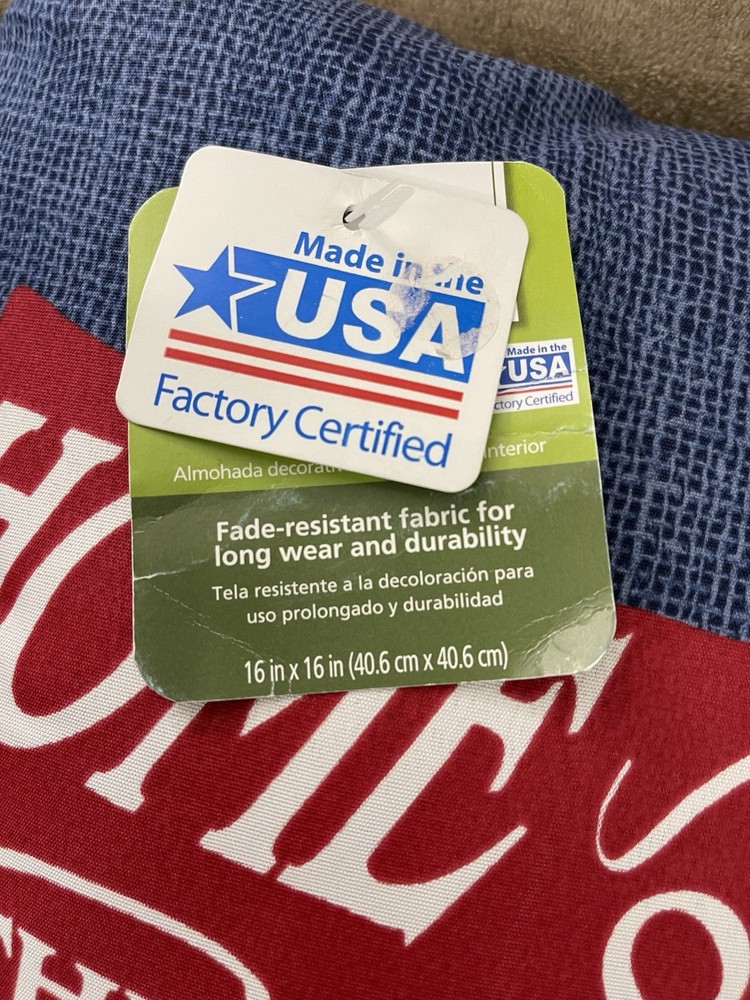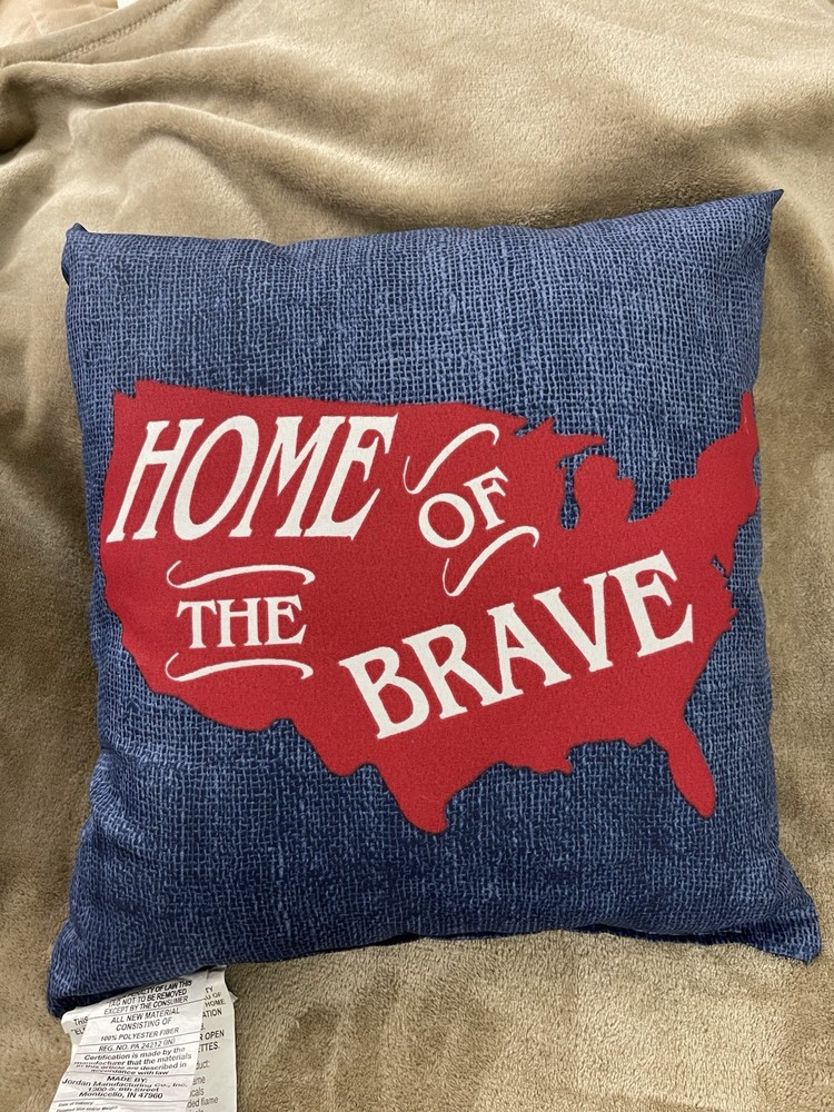 Home Of The Brave 16” X 16” Red, White, & Blue Toss Pillow Shipped USPS New with tags Double sided Outdoor / Indoor Fade resistant fabric Fast shipping …