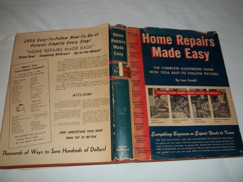 This next set of auctions will include be a mixed lot of goodies. I am working on listing many lots of vintage items and some newer things. I will be listing a wise variety of goodies- many are brand new in the package, many vintage. Please look at my other auctions for more great items! This auction is for the two vintage Handy Man / Home repair books. Both are hard covers. THe Home Repairs Made Easy book is a first edition from 1949. Interior excellent, dust jacket has some old age hiccups. The Better Homes and Garden one is STUNNING- 5 ring binder with all interior pages- interior plastic slip cover still present, all tabs and pages crisp and pristine. Good Luck! Items are listed as is- please see description and pictures for details. If you have any questions, please email me before you bid. I will happily combine winning auctions whenever possible to save you money on shipping. Please wait to pay until I send you a combined invoice. Everything is shipped by weight, so what you see on the shipping is USPS's price. I do not charge any shipping and handling fees. If you do not like the listed method of shipping- (you prefer priority mail or something different ) please email me before paying and I will send you an adjusted invoice. I typically ship within one day of payment. Occasionally I have a kid event or work a double and need an extra day for shipping- I apologize up front if there is a day delay.