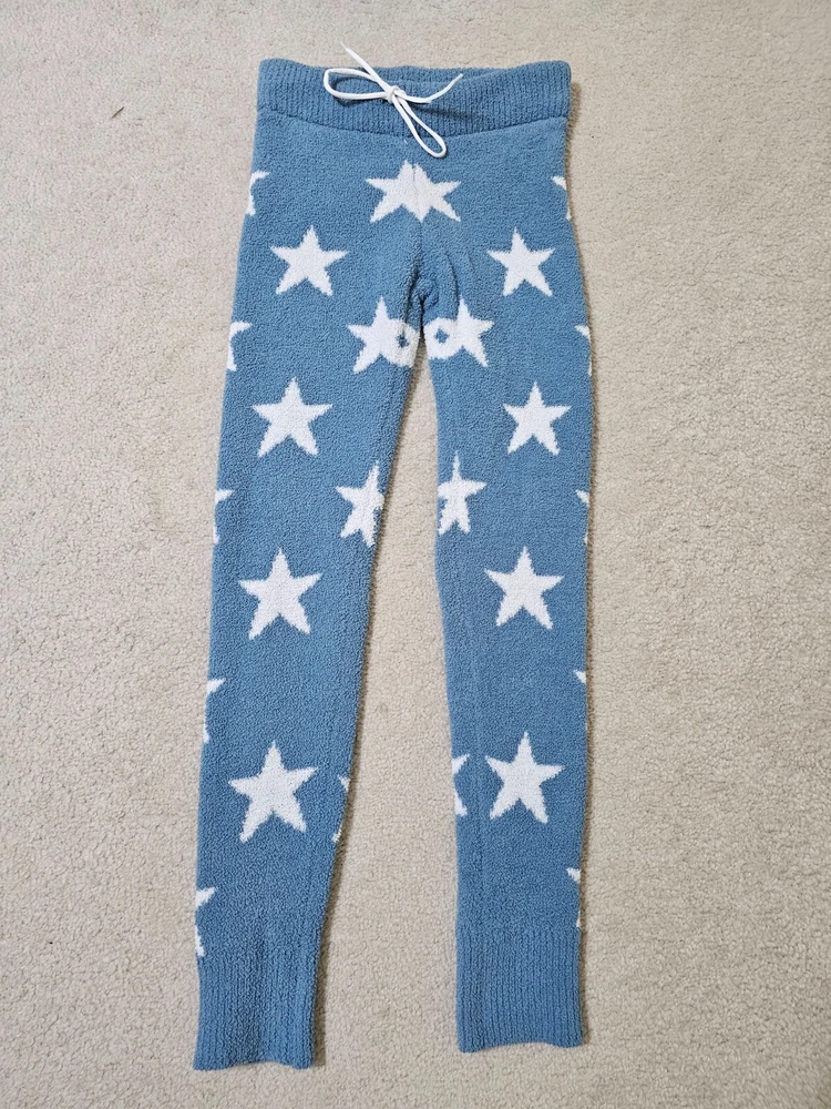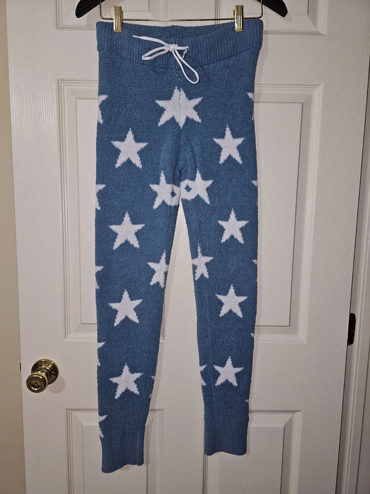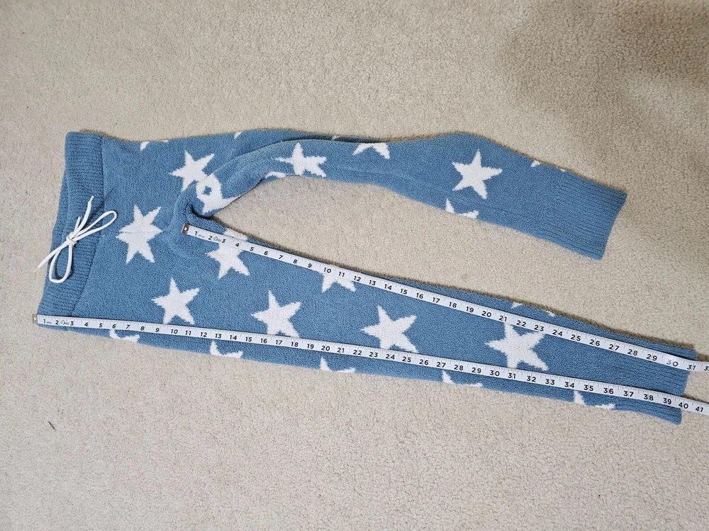 Honeydew Women`s Blue with White Stars Cozy Chenille Lounge Pants Leggings Sz.S Brand: Honeydew Women`s size: Small Material: 100% Polyester Color: Light Blue with White Stars Machine wash cold Ultra soft and very stretch chenille Lounge Pants Leggings. Pull on, high waisted, draw cord is not original. No any defects. Approximate Measurements (lying flat): Full length: 40 in. Inseam: 31 in. Waist across: 14 in. Rise: 10-12 in. Great pre-owned condition. The draw cord is not original. No more defects. If you have any questions, please message me before committing to buy so you're happy with your purchase!! FAST SHIPPING!! ITEMS PACKED WITH CARE From smoke and pet free home. Honest Seller Buy with Confidence 100% Feedback- (View Seller Feedback) I use Ebay mobile and try our best to answer all questions promptly Detailed descriptions given of every item so you know exactly what you're purchasing Please view pictures, approx. measurements and item's description page provided in this listing All pictures stored for future reference of this item's described listed condition Thanks for Looking :) I Appreciate your Business!!