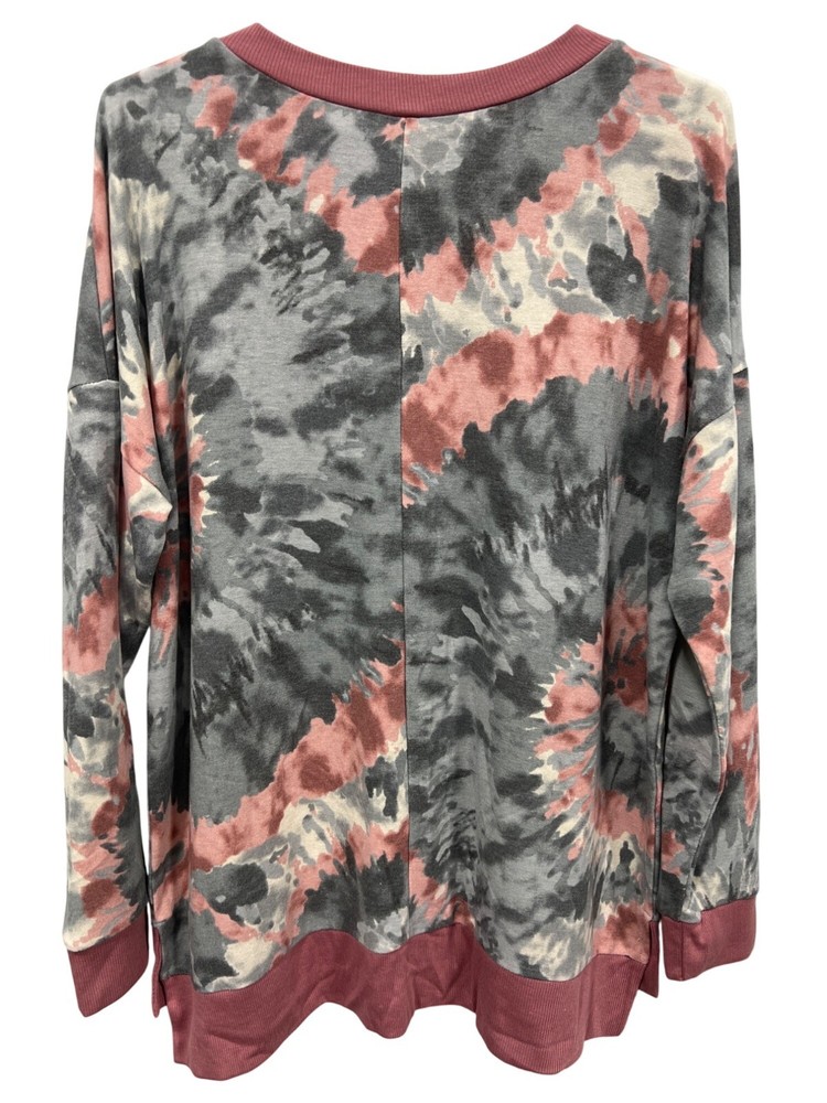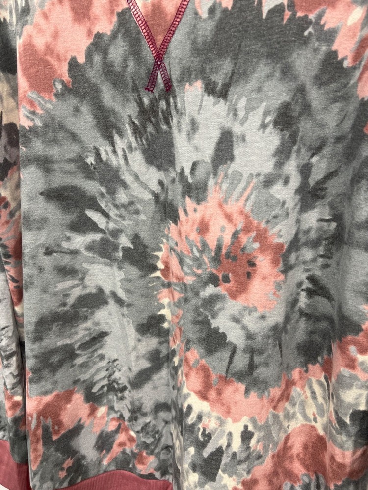 Honeyme Tie Dye Pullover Sweatshirt Womens Medium Gray Loungewear Relaxed Cozy This stylish Honeyme sweatshirt features a unique tie-dye pattern, combining comfort and fashion. The blend of polyester and rayon ensures a soft feel and durability, making it a versatile addition to any wardrobe. • Crew neck design • Ribbed trim • Side slits • Dropped shoulders • 63% Polyester 34% Rayon 3% Spandex • Made in USA Chest = 25 inches, Length = 27 inches indie artsy casual classic comfortable relaxed fall winter warm knit cozy comfy loungewear everyday closet staple modern essentials daily