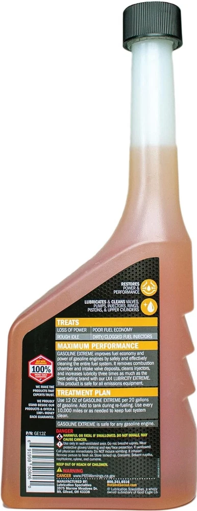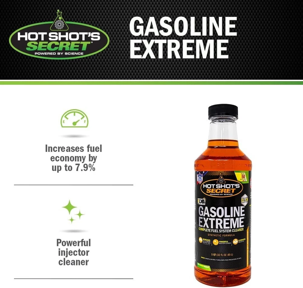 Cleans Fuel System – Deeply cleans, lubricates, and protects any gasoline fuel system and engine including valves, pumps, injectors, rings, pistons, and upper cylinders Increases Fuel Economy – Boosts MPG by up to 7.9% after the fuel system is fully cleaned by providing an effective boost in combustion, fuel economy, and engine power Fixes Issues – Resolves several symptoms of a rough-running engines in one treatment, including poor fuel economy, rough idling, clogged fuel injectors, and loss of engine power Restores Performance – A powerful P.EA. based cleaner deeply cleans to restore engine power while also working to dissolve gum and varnish, and remove combustion chamber deposits