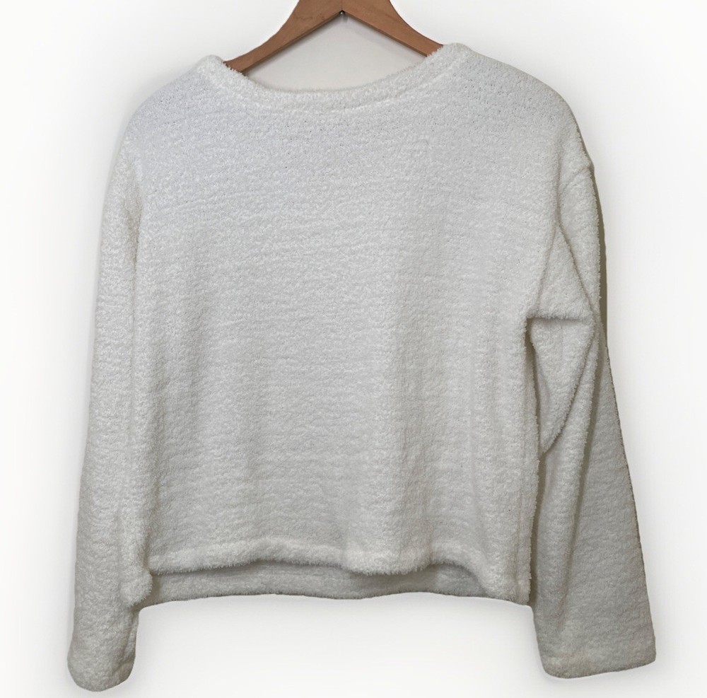 Size small 21 inches long, 22 inches pit to pit Crop sweater Ivory In good condition, I see a few faded spots. Only visible in certain light. On one sleeve and front pocket See photos for reference. A...