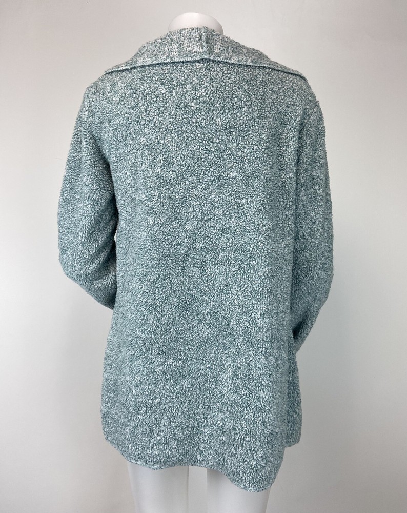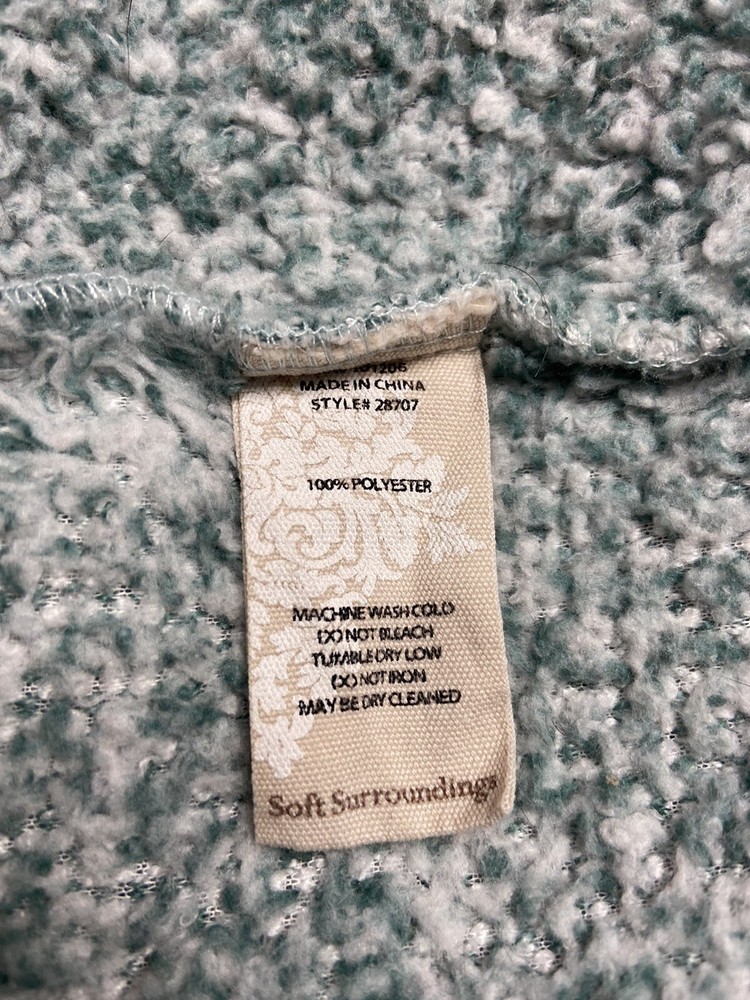 Measured laying flat & unstretched Size Small Pit to Pit 22" Length 28" In Back 30" Longest Point In Front 100% Polyester Machine Wash Causal 2 Patched Pockets 1 Button Closure Hug Me Cardigan Plush Fuzzy Cozy Style # 28707 WW