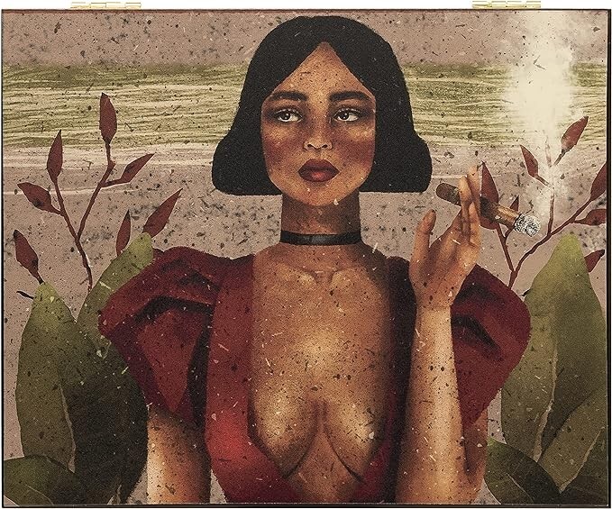 Today Quality Importers Trading Company (QI) introduces the Global Gallery Collection, a series of cigar accessories that are based upon unique NFT artwork from around the globe. With every sale of these luxurious pieces of functional art, a portion of the proceeds will go to the artist to further support their work. The Havana Beauties Global NFT Gallery Collection is designed by Maryam Sadeghi, an architect and self-taught artist based in Iran who feels “in this turbulent world, perhaps we can polish our souls a little through art.” Features Premium kiln-dried Spanish cedar interior, SureSeal technology to insure proper lid seal on closure and has a scratch-resistant felt-lined bottom. Product Overall Dimensions: 10-5/8" W x 8-3/4" D x 3-3/16" H