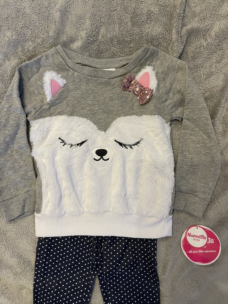 Girls Sweater & Leggings Husky Puppy 2 piece Outfit Size: 4. Adorable Comfortable Furry puppy Glitter Bow Sweater/Sweatshirt with matching Leggings/Pants Size: 4 New with Tags Please Checkout My Other Listings