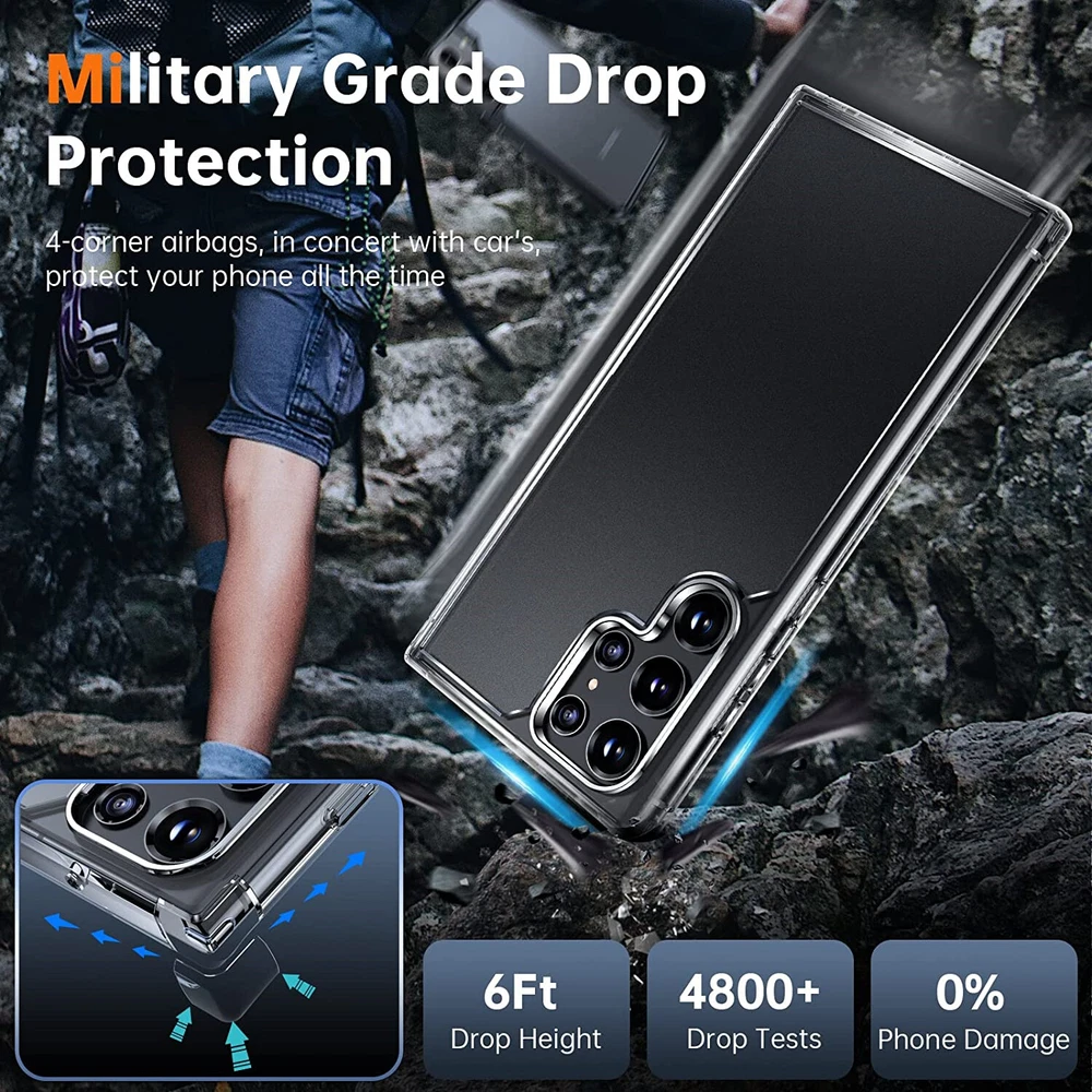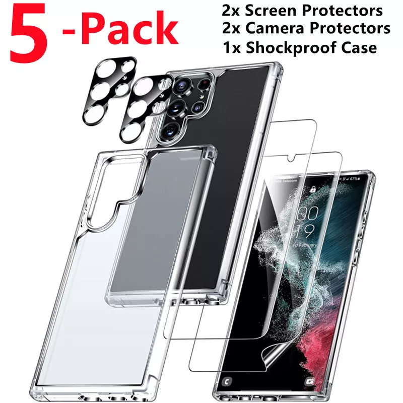 Hydrogel Screen Protector Camera Protector Shockproof Phone Case for Samsung S24 Ultra S23 Ultra Plus S22 ❤️Value 5 Pack 🎁 US SELLER FAST SHIPPING 🚀 Durable✅ New Hydrogel Screen Protector Full Cover: √【Full Coverage】 The premium soft TPU (flexible film) is designed exclusively for phones with curved edges to ensure edge-to-edge protection. (This product is TPU protective film, NOT glass protector.) √【Easy Installation】 Bubble-Free Adhesives for easy installation and no residue when be removed. Adopt real machine to open the mold, ensure the hole position is 100% perfect fit. √【Automatic Repair Function】 Any bubbles and scratches will disappear automatically in 24 hours, it is not necessary to press the bubbles with your fingernail or scraper. √【High Definition & Sensitivity】 Ultra-thin 0.01mm thickness allows you to experience the highest original screen quality and keep the original saturated color of the screen, the HD natural visual and the high sensitivity will help you to obtain the happy mood. √【Oleophobic Coating】 Oleophobic and Anti-Fingerprint Coating protects your screen from fingerprints and oily stains and is easy to clean, keeps your screen with a clear view and smooth touch feeling. Tempered Glass Camera Lens Cover Protector: Eliminate the glare caused by the flash while maintaining the high quality of image. You can take perfect photos even in the dark. Strong Adsorption & Bubble Free: This galaxy s22 ultra camera lens protector made of upgrade nano static automatic adsorption technology, which is very sticky and not easy to fall off. Easily install and bubble proof all-day experience. HD Clarity & Scratch Resistant: Made of 9H hardness glass, 99% transparency retain the original screen or picture brightness, no any effect your picture or video, 9H Hardness enough to protect your screen from scratches.abrasions and impacts. Shockproof Phone Case Cover: [Ultra Slim Thin] - Constructed from smooth, high quality, tough and flexible Soft TPU that resists dirt and stains. Form fitted slim design keeps your Phone light weight and scratch-free. [Raised Camera & Screen Protection] - The raised edges prevent the screen and camera from touching the ground, causing dirt or scratches. Dotted Texture interior design keeps your phone's form and color, to help prevent the air bubbles at the back of your phone. [Durable] - The edge of this phone case is hardened to resist deformation even after multiple installations or removed over a long period of time. [Anti-slip] - Comfortable grip, effectively preventing the phone from slipping out of your hands, and the interior of the case is designed with ultra-fine particles to make the phone more stable in the case. [Shock Absorption] - 4 unique corners of shock protection ensure your phone has the highest level of impact - resistance, providing maximum protection against hits to the sides, allowing you to use your phone safely in many situations. Compatible Model: For Samsung Galaxy S24 Ultra For Samsung Galaxy S24+ For Samsung Galaxy S24 For Samsung Galaxy S23 Ultra For Samsung Galaxy S23+ For Samsung Galaxy S23 For Samsung Galaxy S22 Ultra For Samsung Galaxy S22+ For Samsung Galaxy S22