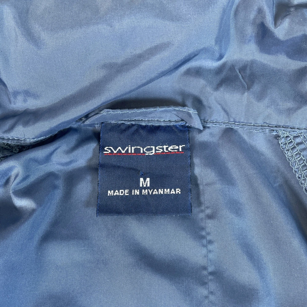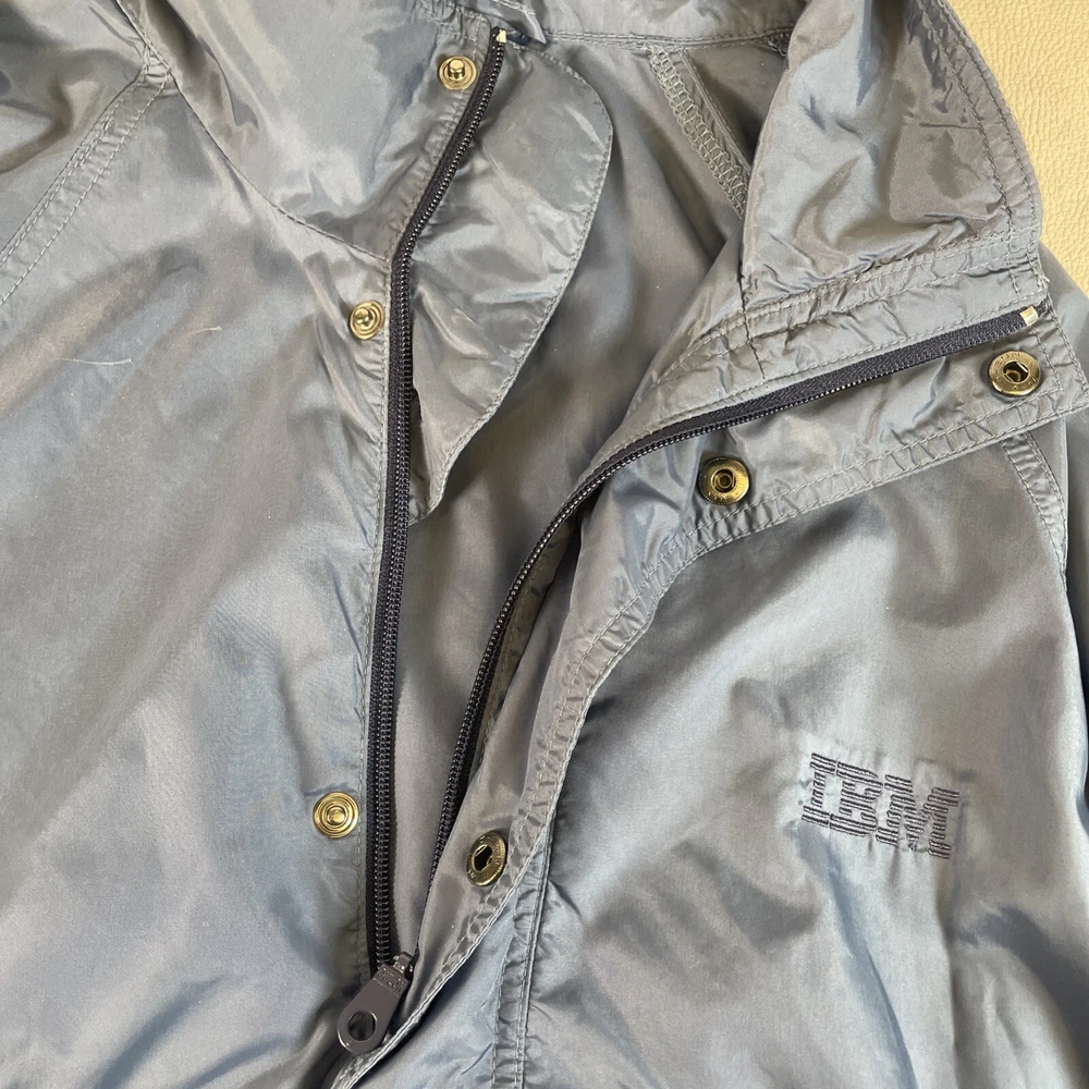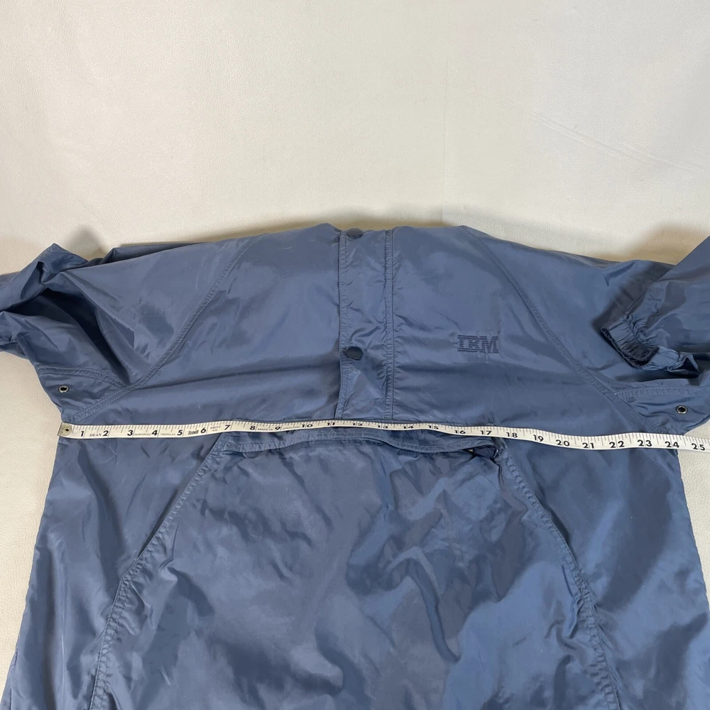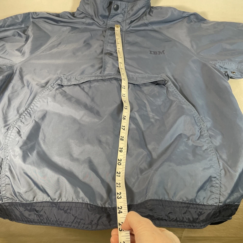 Vintage Swingster IBM blue windbreaker. Shipped using USPS Ground Advantage or Media Mail Please view all photos for condition As pictured Washed per manufacturer standards Know your measurements, NO RETURNS for fit issues-see photos Armpit to armpit: 24" inches-see photo Armpit to wrist: 22" inches-see photo Mid collar to waist: 25" inches-see photo Smoke and pet free environment Fast, careful shipping