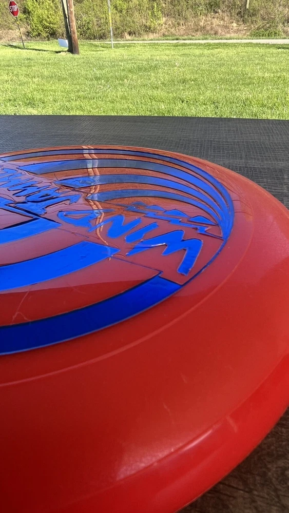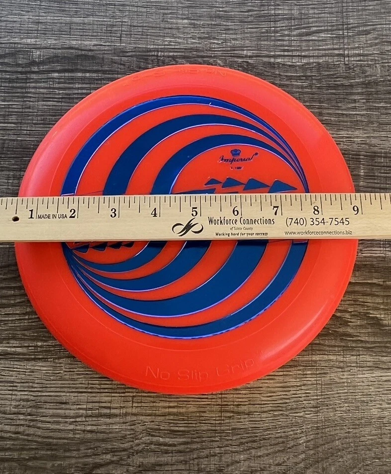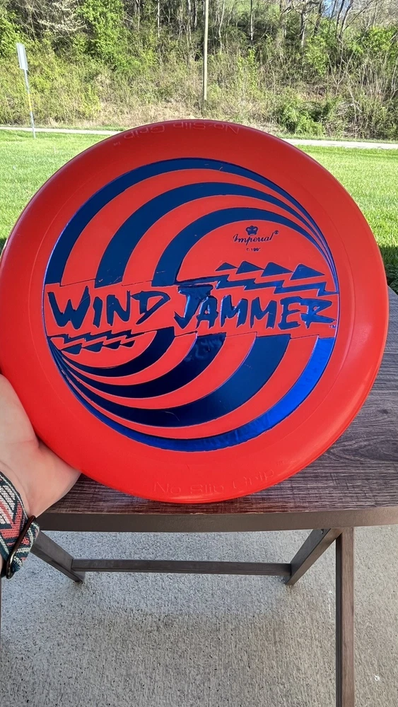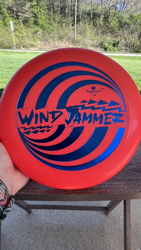 Vintage 1992 Imperial Frisbee Wind Jammer No Slip Grip Red Metallic Royal Blue Does have some wear on the lettering ~ see photos. Great colors!