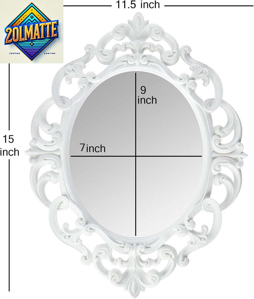 Glass, Plastic Made from high quality materials A must have for every household Great quality item Bring classic style to your space with this charming white oval vintage wall mirror featuring a decorative plastic frame with flourishes and curling vines. Measures approximately 15x 11.5. Comes packaged in an individual shrink wrapped box.