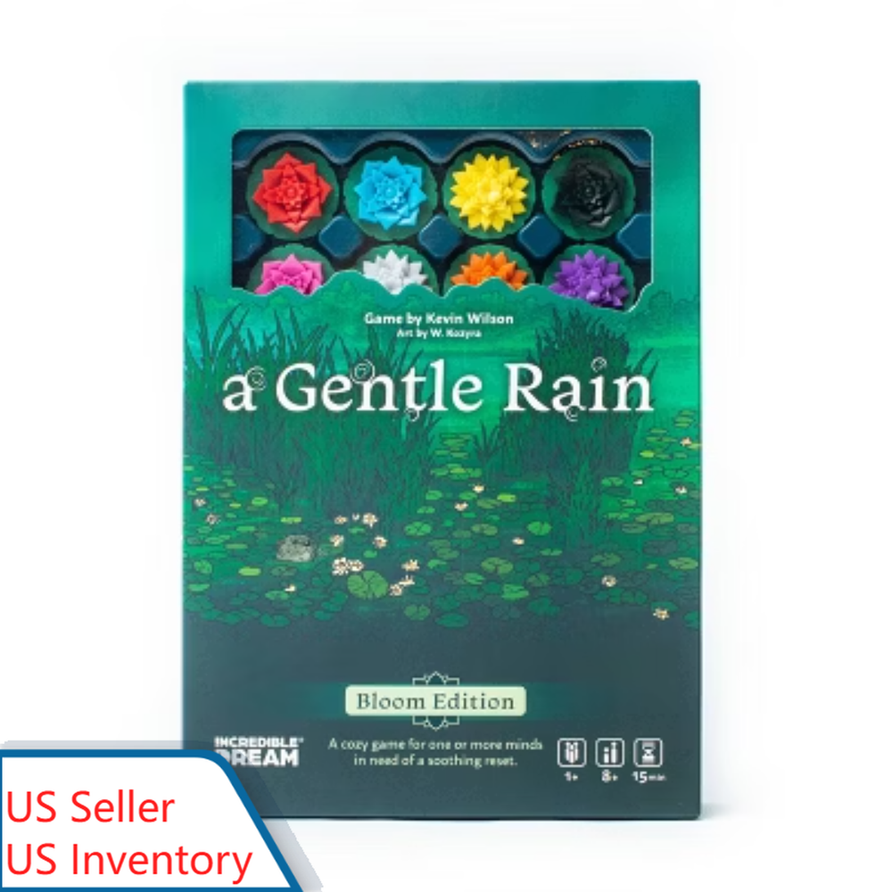 Description Take a moment to relax with “A Gentle Rain” by Incredible Dream Studios, a calming tile placement game by designer Kevin Wilson for 1+ players. In just 15 minutes, you’ll immerse yourself in mindful gameplay, where every turn is a step toward serenity. Experience the art of simplicity with the A Gentle Rain: Bloom Edition Game by Incredible Dream Studios, where each velvety soft tile you place—you draw one and place one. Target Exclusive: Watch the lake and flowers bloom with color as you gradually playthrough delicate, sculpted lotus blossoms. This mental reset is perfect for solo reflection or shared moments of calm. Easy to learn and beautifully compact, this game fits into life like a peaceful pause. highlights Target Exclusive A Gentle Rain: Bloom Edition Game: 8 sculpted, 3D lotus-blossom tokens Tactile-rich, premium experience. A Gentle Rain features 28 velvet-touch tiles of colorful flowers that are as rewarding to touch as they are to look at Mindful gameplay: The minimalist gameplay creates a calming sense of gentle flow on a quiet lake for a tranquil retreat. Each turn encourages players to stay in the present moment and experience subtle choice Simple to learn and get into the flow. Gameplay is simple: draw one, place one. While there's strategy in tile placement, the choices are clear and non-overwhelming A relaxing game for a mental reset in minutes. The experience is a departure from competitive or high-tension games, and can create some space amid a busy day