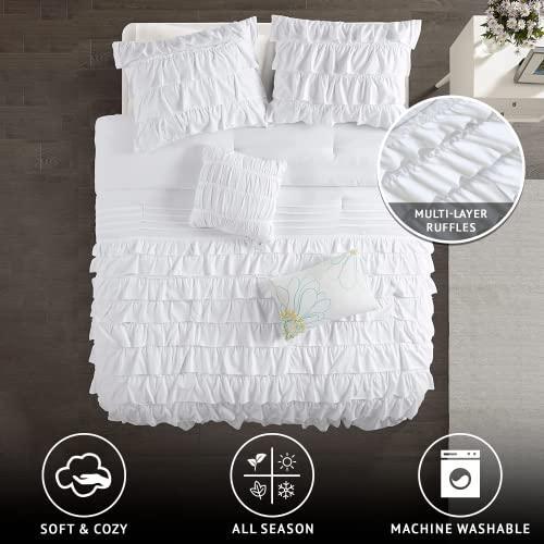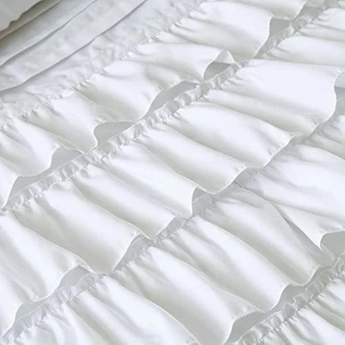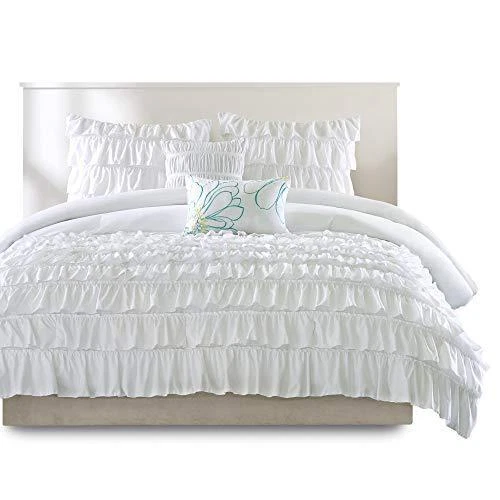 Jungpo-40 junpo-40 Intelligent Design Cozy Comforter Casual Waterfall Multi Layer Ruffle All The Intelligent Design Waterfall Ruffled Comforter Set brings a graceful comfort to your bedroom decor. Beautiful flowing ruffles on the bottom half of the white comforter add charming appeal to the comforter and 2 coordinating shams (1 for Twin/TwinXL). A solid white reverse creates a clean look, while two decorative pillows with fabric manipulation and embroidery provide a touch of casual elegance to the bedding set. Made from ultra-soft microfiber, this printed comforter set is machine washable for easy care. This bedding set is OEKO-TEX certified, meaning it does not contain any harmful substances or chemicals, ensuring quality comfort and wellness. Features TECHNIQUE and COLOR - Our bed in a bag has complimenting stitching techniques ranging from the classic solid with hidden bar tacks leading to the pleated stripes leading up to the complete ruffle, perfect match of classy techniques fused into one Queen comforter set for a boy's or girl's room. Our bed comforter Full/Queen size has the exquisite balance of solid, pleates, to ruffle on an blush canvas to provide that comfy glamorous look. Solid blush reverse bottom completes this beautiful set. PRODUCT FEATURES - 5-Piece Full/Queen-Comforter Set - Down alternative comforter Queen is ultra soft, wrinkle free, hypoallergenic Microfiber, warm and snugly comfy. Queen comforter is gift ready. Our Queen comforter sets for girls and boys is part of our Intelligent Design youth bedding set collection, which is part of dorm room essentials for comfy sleep. Hidden bar tack technique to resist the fill from moving. Shams with matching ruffles pattern to the comforter. WHAT IS INSIDE? 1 Full/Queen Comforter: 90"W x 90"L, 2 Standard Shams: 20"W x 26"L, 2 Decorative Pillows: 12"W x 18"L/16"W x 16"L EASY CARE - Machine wash cold the soft comforter on gentle cycle, tumble dry on low heat, do not bleach to keep the colors vibrant. Pillows: Spot Clean YEAR ROUND - Our all season twin xl bed comforter sets are microfiber bedroom bedspreads collection has a soft reverse side. Designer creates the comforters bedding sets for a more comfortable bedroom experience. About Us We are a genuine seller offering quality items at lower prices. Every item is carefully packaged using the latest technology to ensure safe shipment to you. Thank you for looking! Shipping We take great care packaging every item to ensure safe shipment to you. Shipping is always free to our customers in the US and typically will be shipped out the next business day. Returns We offer free returns within 30 days of purchase. All we ask is that you ship your item back with original box and manuals. Your refund will be processed as money back to your account unless otherwise specified. Payment Immediate payment is required upon selecting "Buy It Now" or upon checking out through the shopping cart. We only accept payment via U.S. PayPal accounts. PayPal allows you to pay using a major credit card or direct transfer from your bank accounts. Contact Us We are committed to providing our customers with the best possible on-line shopping experience. This includes a commitment to excellent customer service, even after your order has been delivered. Please feel free to submit any questions or inquiries regarding your order by sending us a message through the eBay messaging system.
