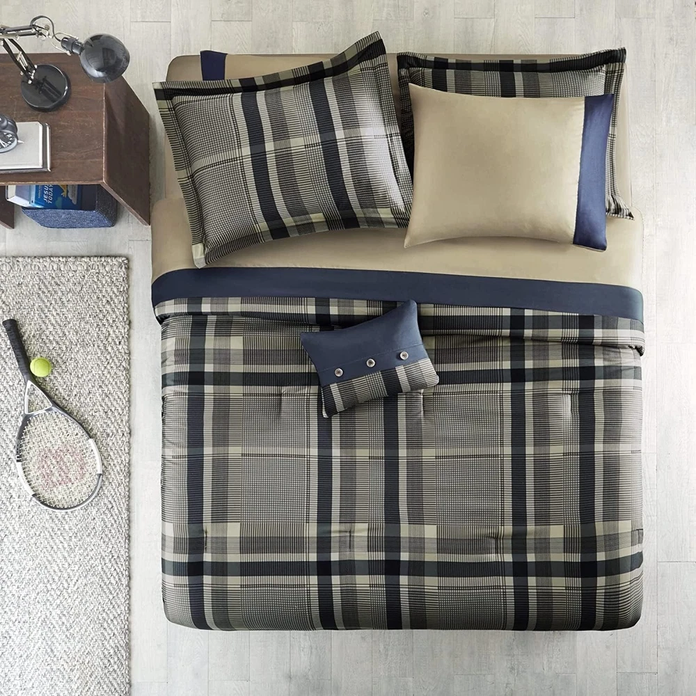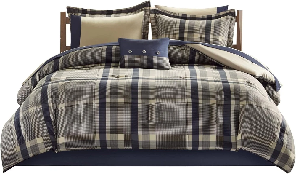 100% Polyester Complete bedding set with comforter, sheet set, bedskirt and decorative pillow soft brushed printed microfiber, 5oz/sq yard polyester filling; Soft brushed printed microfiber flat sheet and fitted sheet; embroidered decorative pillow 1 Comforter:78''W x 86''L 2 Standard Shams:20''W x 26"L + 2''D (2) 1 Bedskirt:54''W x 75''L + 14''D 1 Decorative Pillow:12''W x 16''L 1 Flat Sheet:81''W x 96''L 1 Fitted Sheet:54''W x 75''L + 12"D 2 Pillowcases:20''W x 30"L (2) Machine Washable, Spot Clean pillow