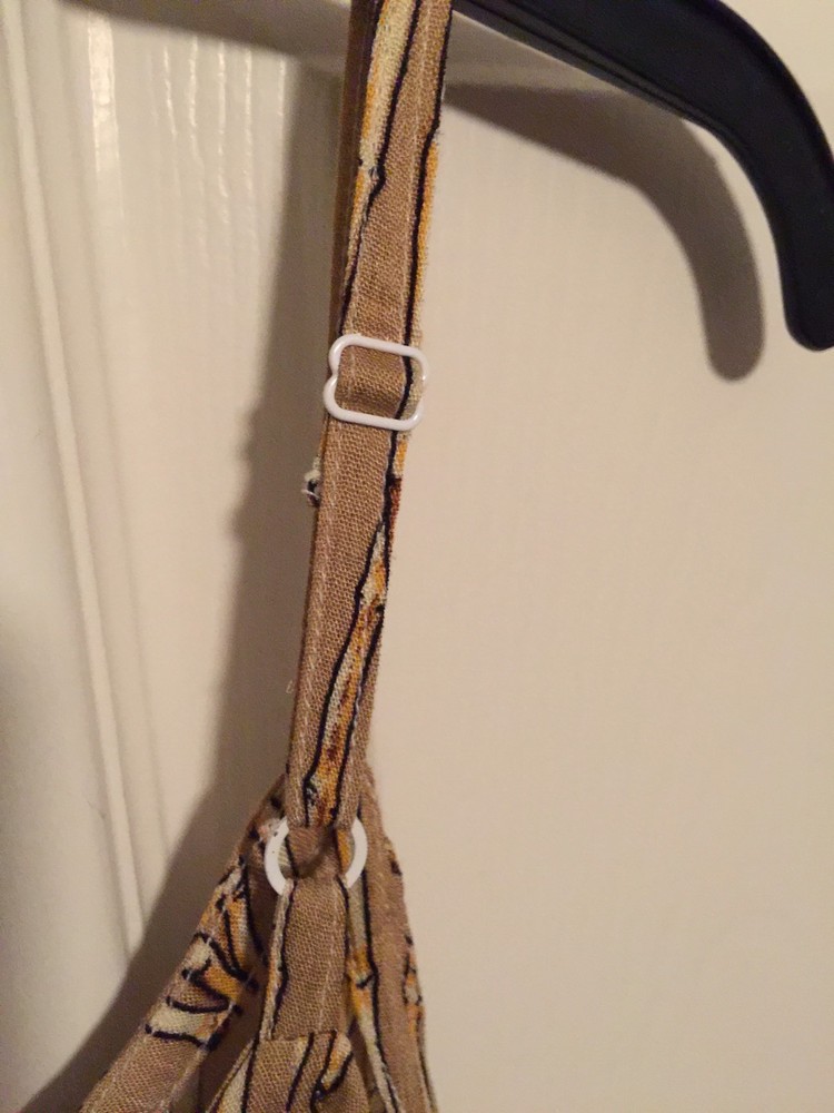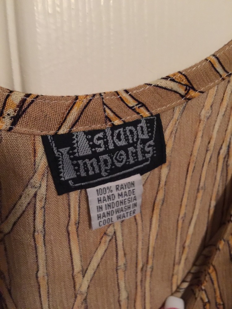 D ress has bamboo stalks print, adjustable straps, chest measures 38", length from underarm is 24". From pet and smoke free home, no rips, stains or tears. please feel free to contact me with any ques...