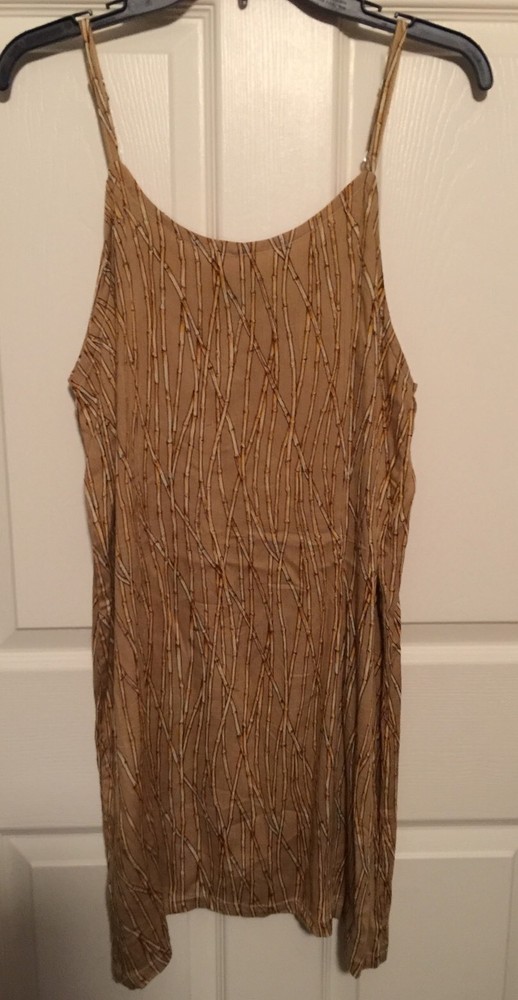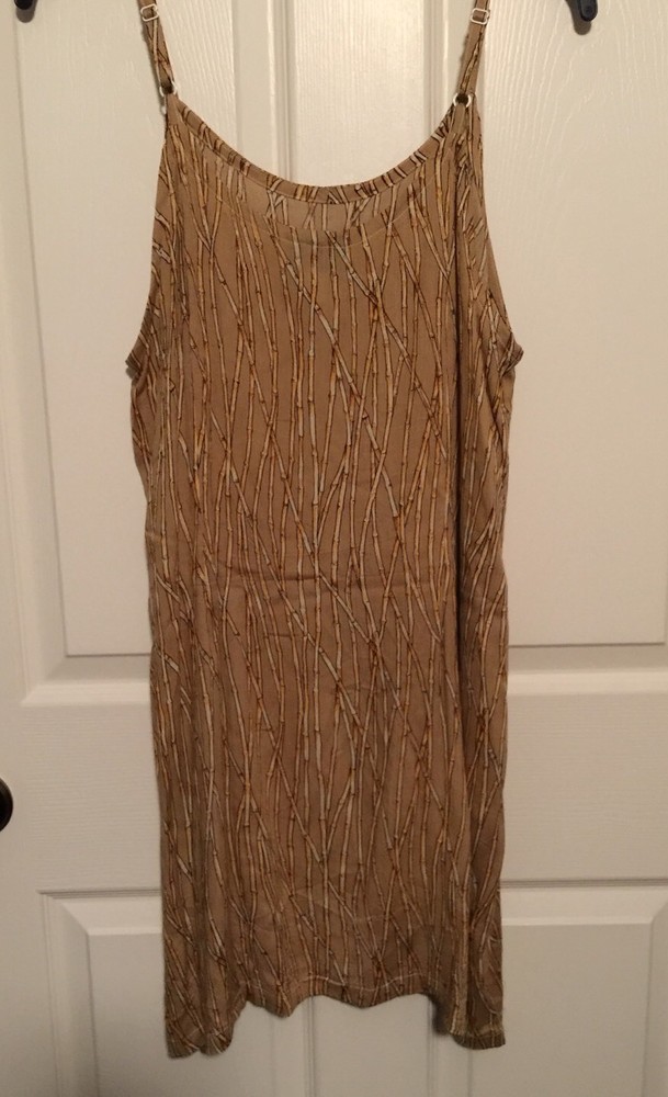 D ress has bamboo stalks print, adjustable straps, chest measures 38", length from underarm is 24". From pet and smoke free home, no rips, stains or tears. please feel free to contact me with any questions you may have. 9O