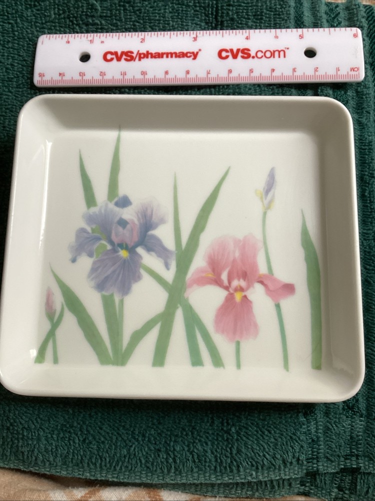 Small Italian melamine tray with Iris flowers. Very nice condition. Measurements in photos.