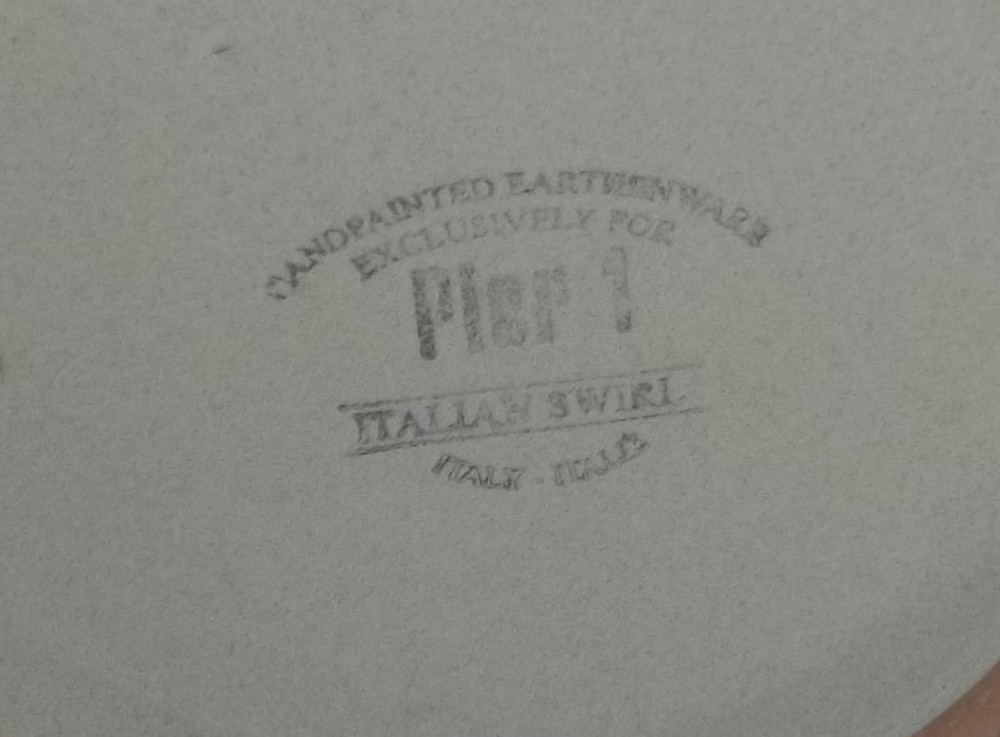 WE HAVE UP FOR YOUR CONSIDERATION: Italian Swirl Pillar Candle Holder- By Pier One Imports The candle holder is 8 1/2" and 4" Diameter. No Cracks or chips Thank you for looking and please shop again. Happy Bidding! croom 1021- shelf Listed by SW