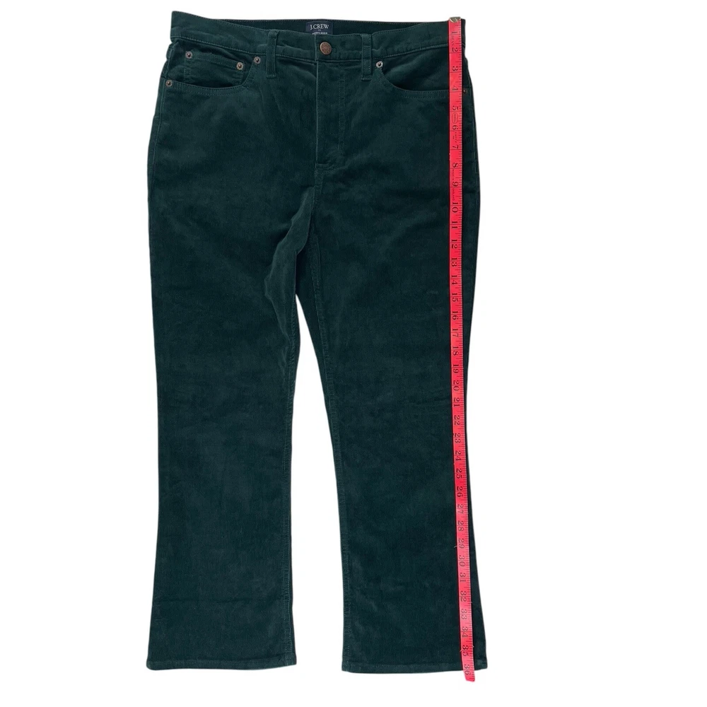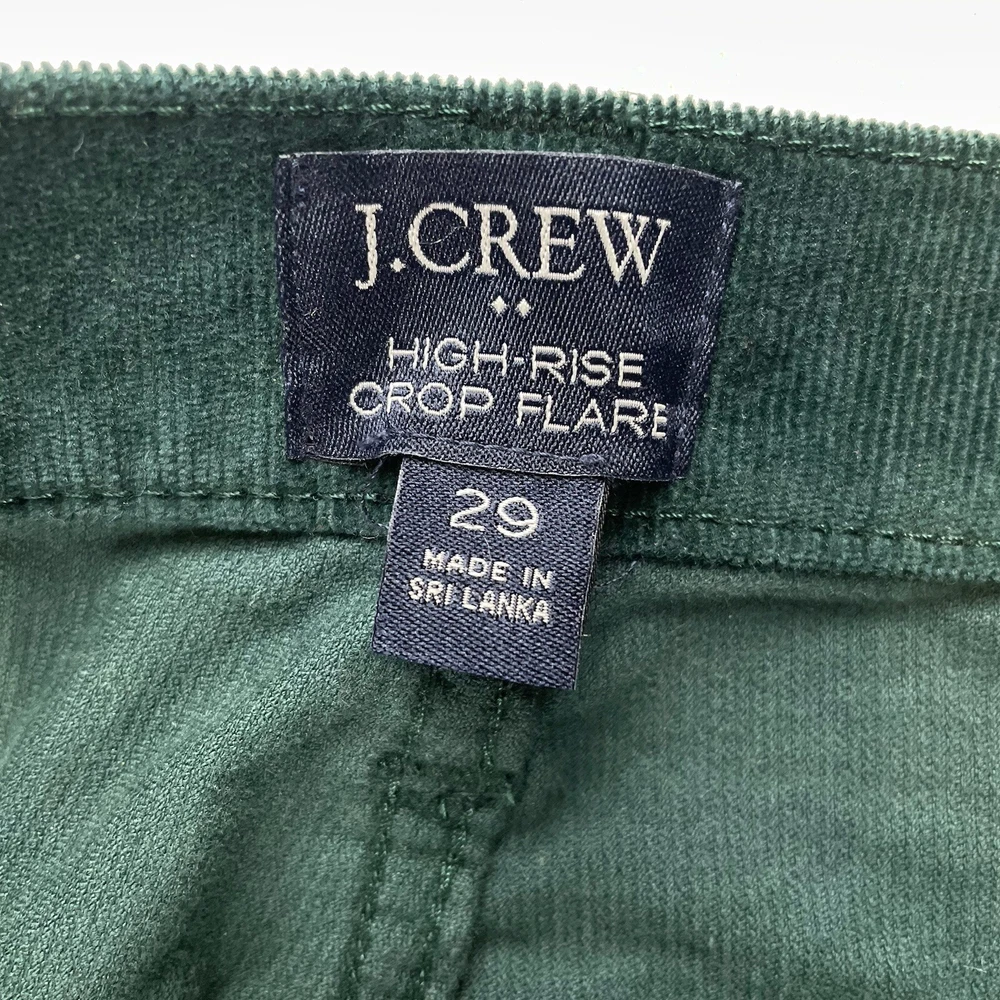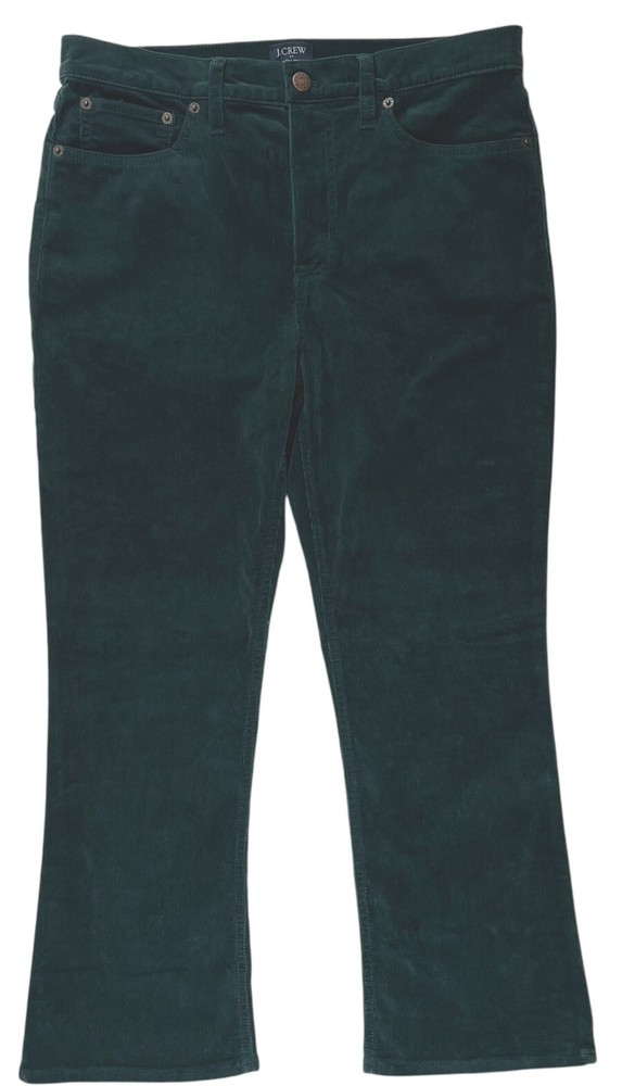 J Crew HighRise Crop Flare Corduroy Pants Womens 29 Emerald Green Academia Cozy Comfort Trendy Measurements: 16" Waist. 11" Rise. 26" Inseam. 36" Top of Waist to Hem. Please view photos as part of description. Sold as Pictured. Thank you for shopping Lambnlinen!