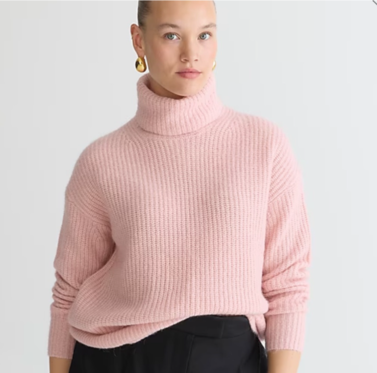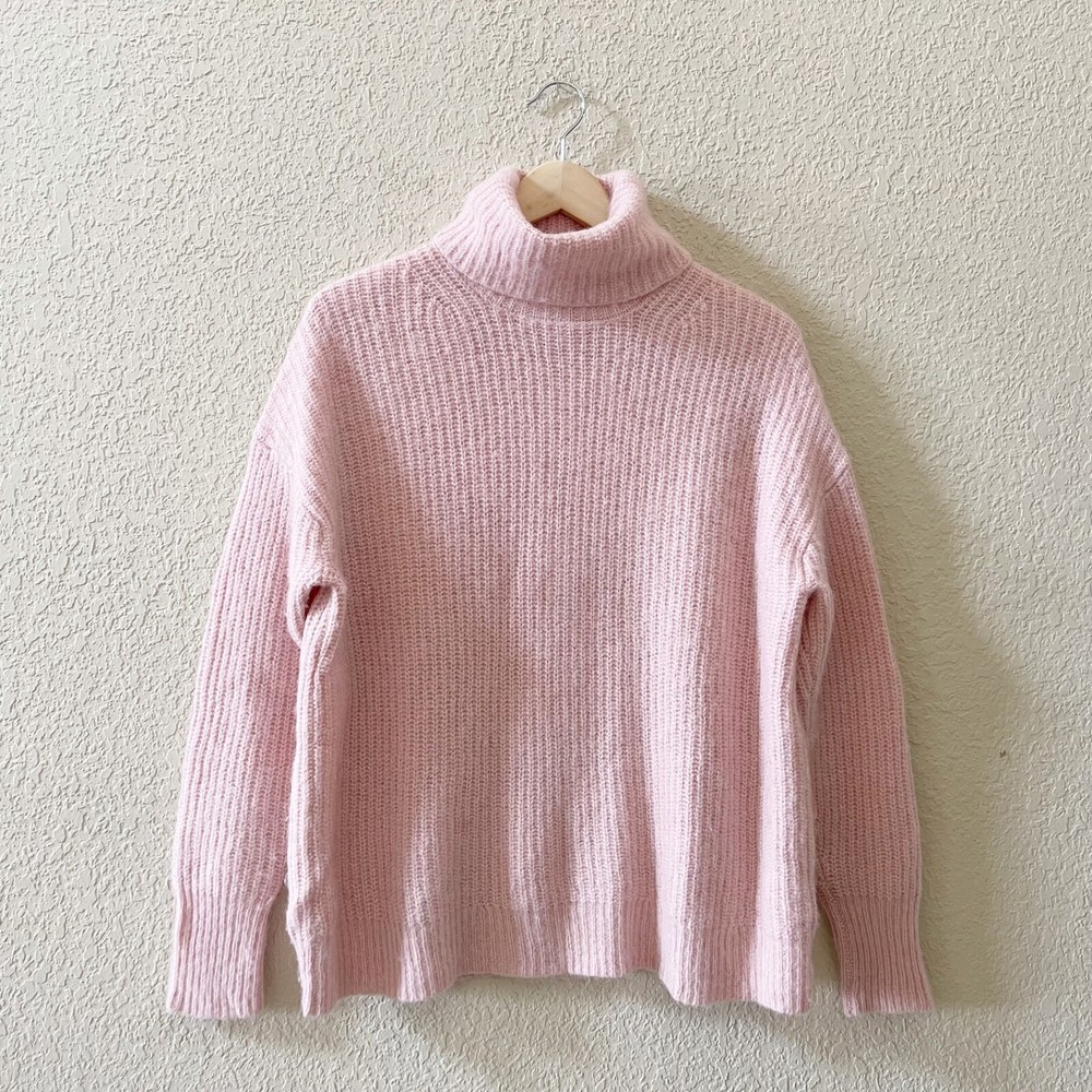 Elevate your wardrobe with this cozy and stylish J.Crew sweater. Crafted from a blend of wool and alpaca, this oversized pullover features a turtleneck neckline and long sleeves for ultimate comfort. The soft pink color adds a touch of feminine charm. Perfect for any occasion, this sweater is a must-have addition to any woman's closet.